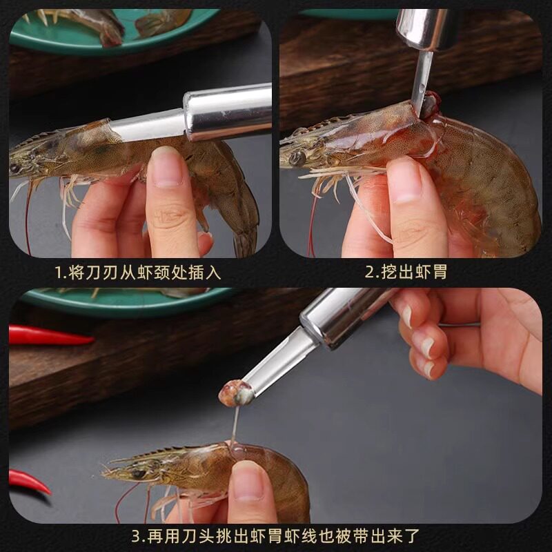 不锈钢虾线剔除刀挖虾胃剥虾壳取虾线神器挑去虾线开虾背龙眼去核