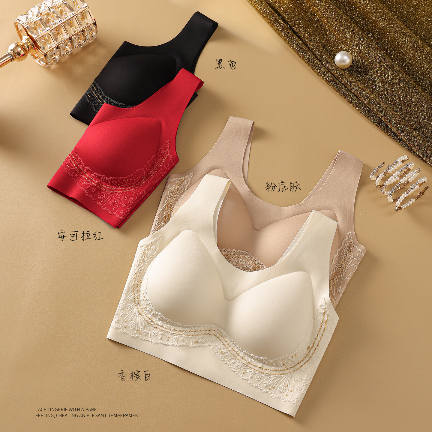 蕾丝刺绣无痕内衣女无钢圈聚拢防下垂收副乳固定杯美背心文胸罩