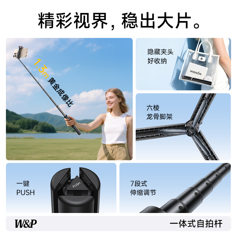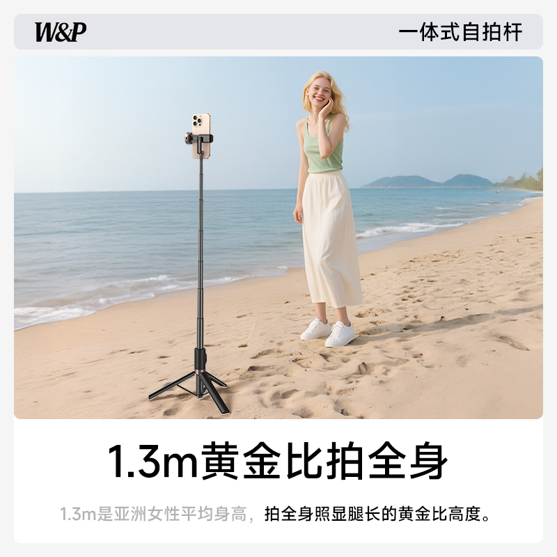 【迷你隐藏式】W&P手机自拍杆旅游便携2025新款通用落地三脚架直播支架手持拍照防抖360°旋转演唱会拍摄神器