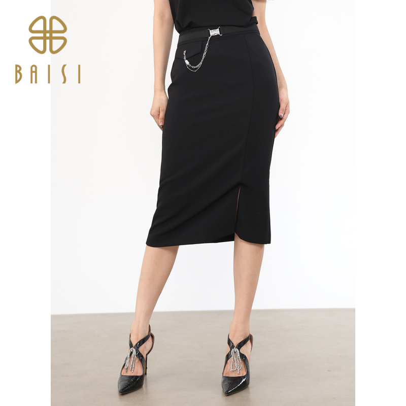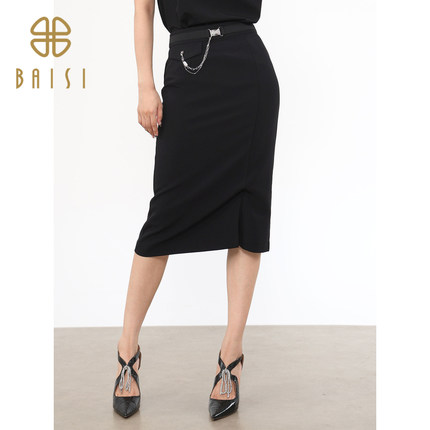 百丝赫本风黑色气质包臀裙春季新品职业装高腰显瘦过膝半身裙