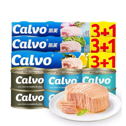 西班牙进口Calvo凯芙盐水浸原味低脂原块金枪鱼罐头橄榄油葵花籽