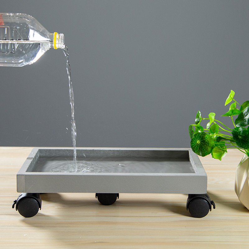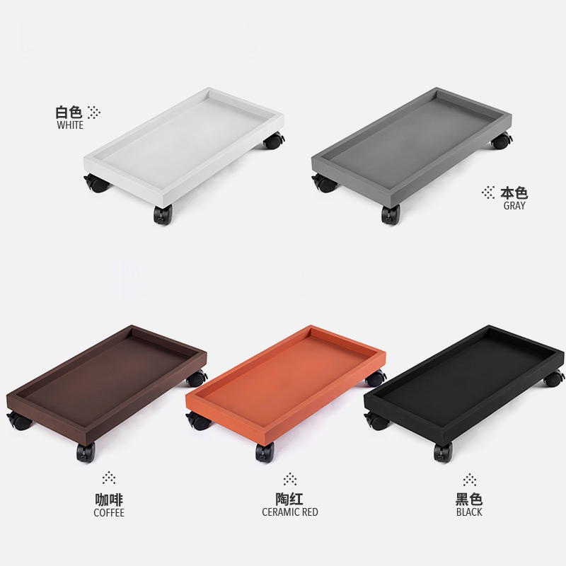 玄之祥石长方形可移动花盆托盘带滑轮万向轮底座仿水泥接水盘定制