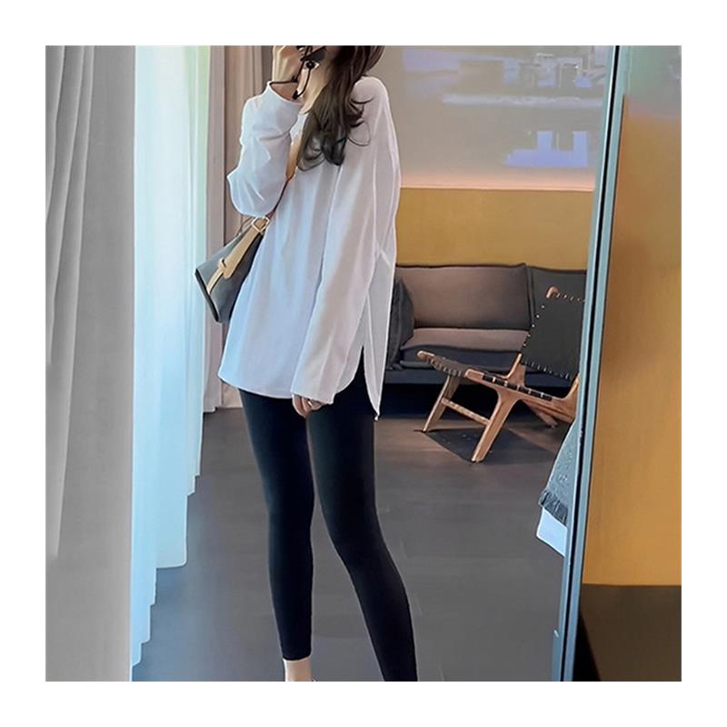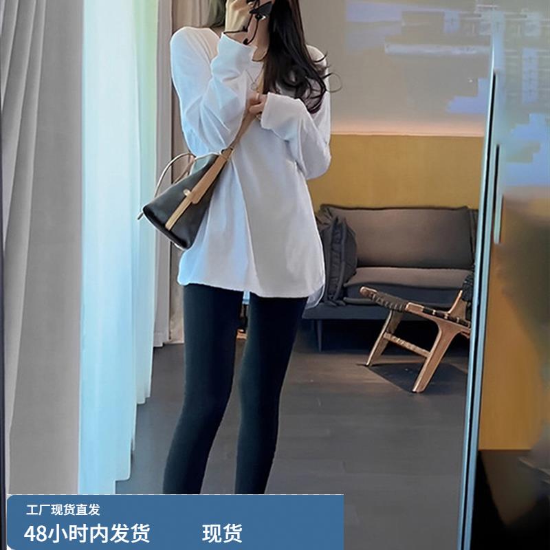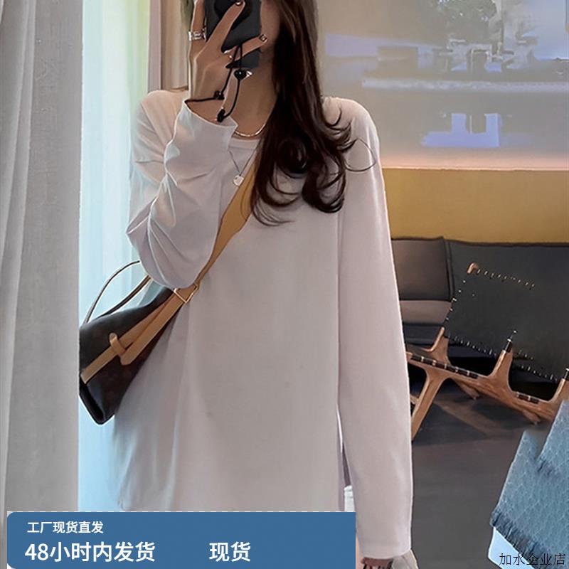 白色中长款打底衫女遮屁股卫衣内搭叠穿长袖t恤鲨鱼裤搭配的上衣