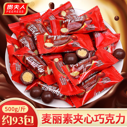 麦丽素巧克力夹心春节过新年货散装结婚喜糖代可可脂脆心糖果零食