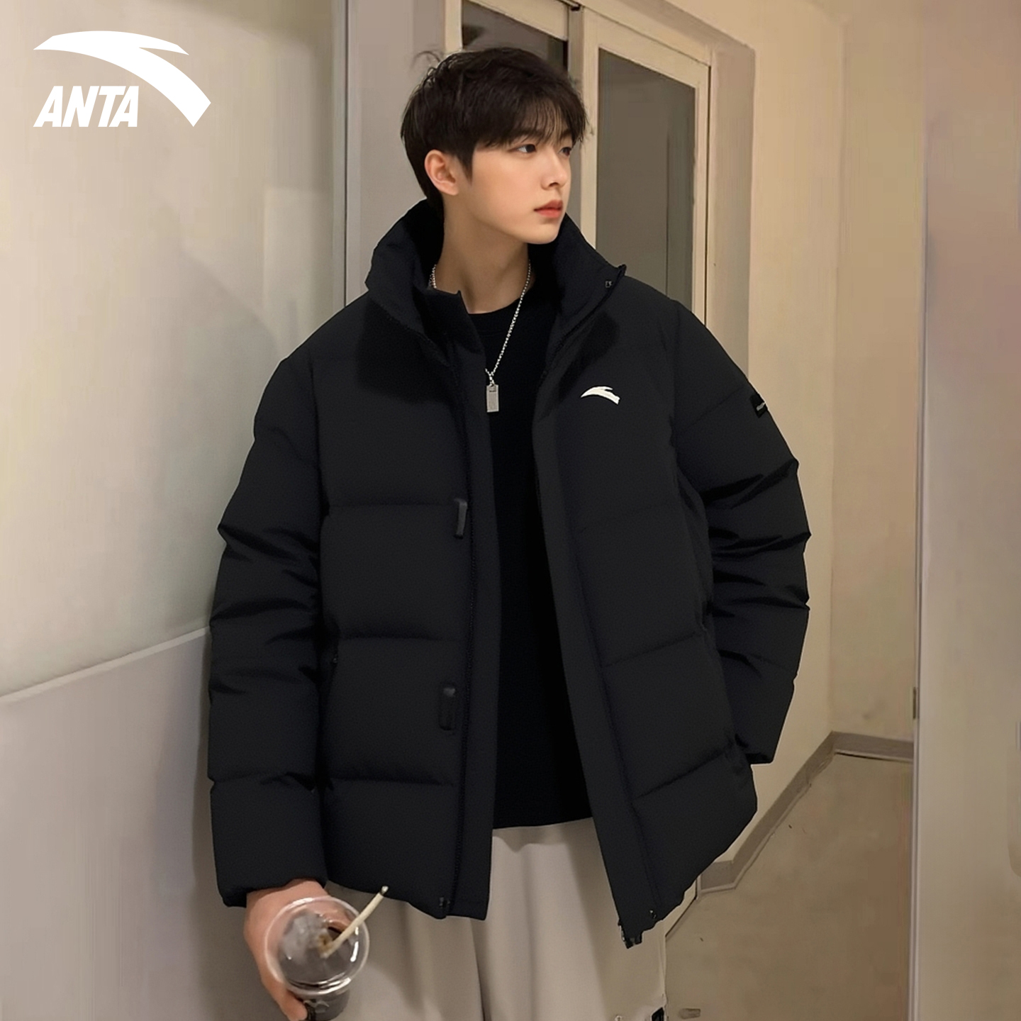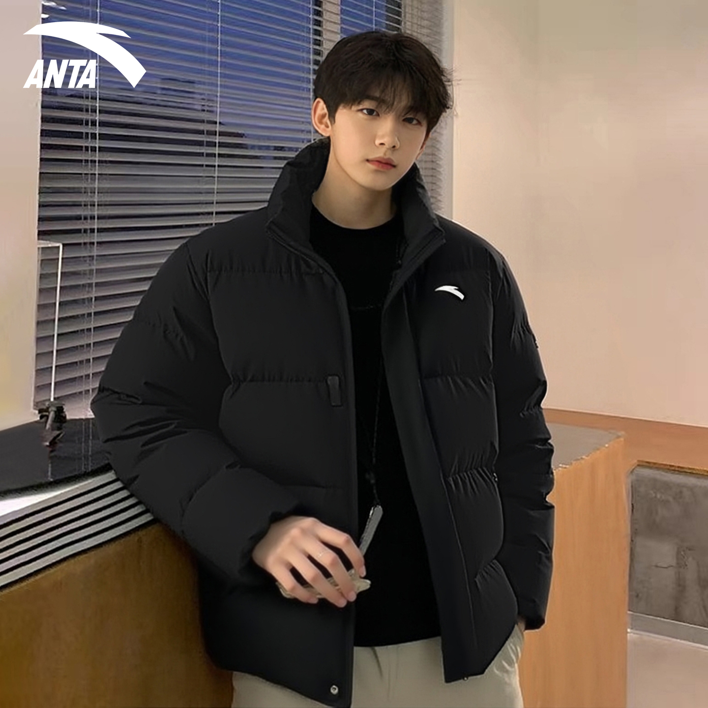 安踏羽绒服男2025秋冬新款短款轻便面包服保暖风衣黑色立领棉服男