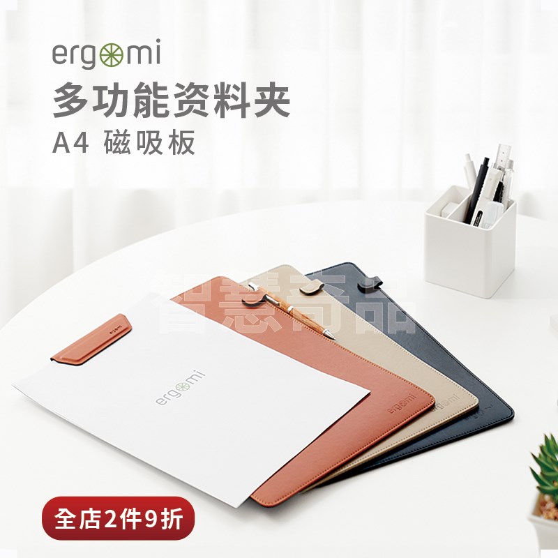 A4磁吸文件夹多功能皮革办公垫复写垫板活页板夹附带磁吸纸夹笔夹
