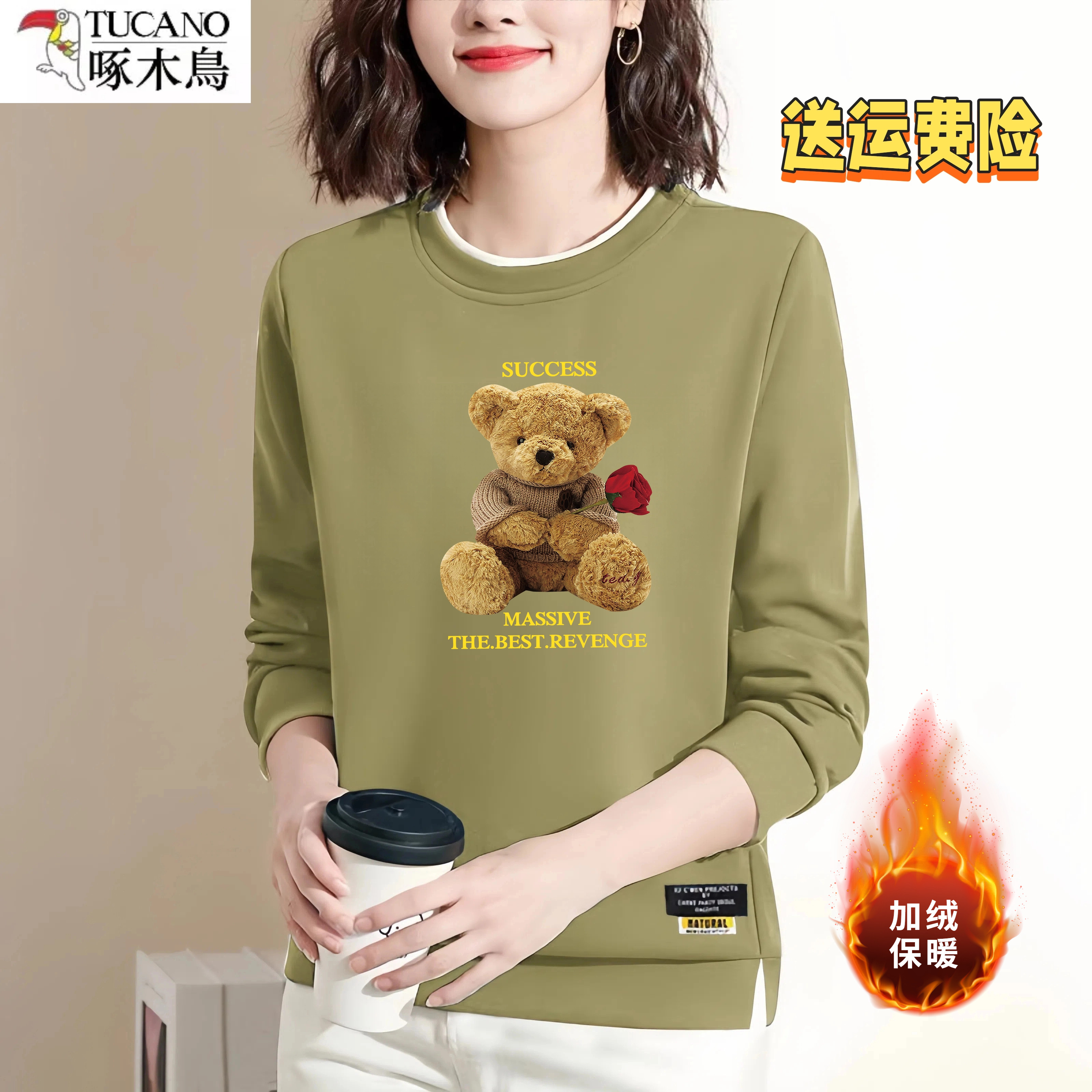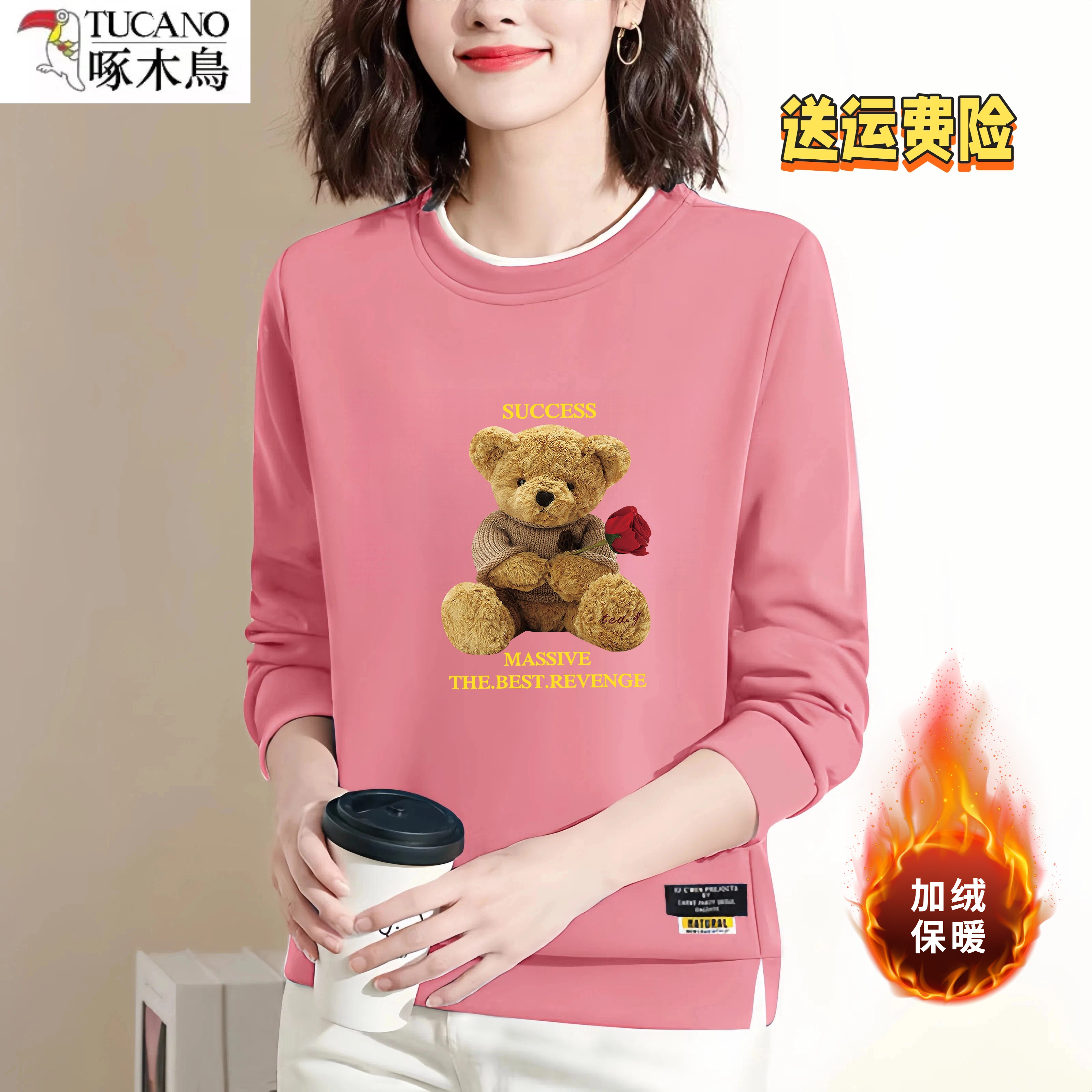 啄木鸟加绒加厚纯棉长袖卫衣女