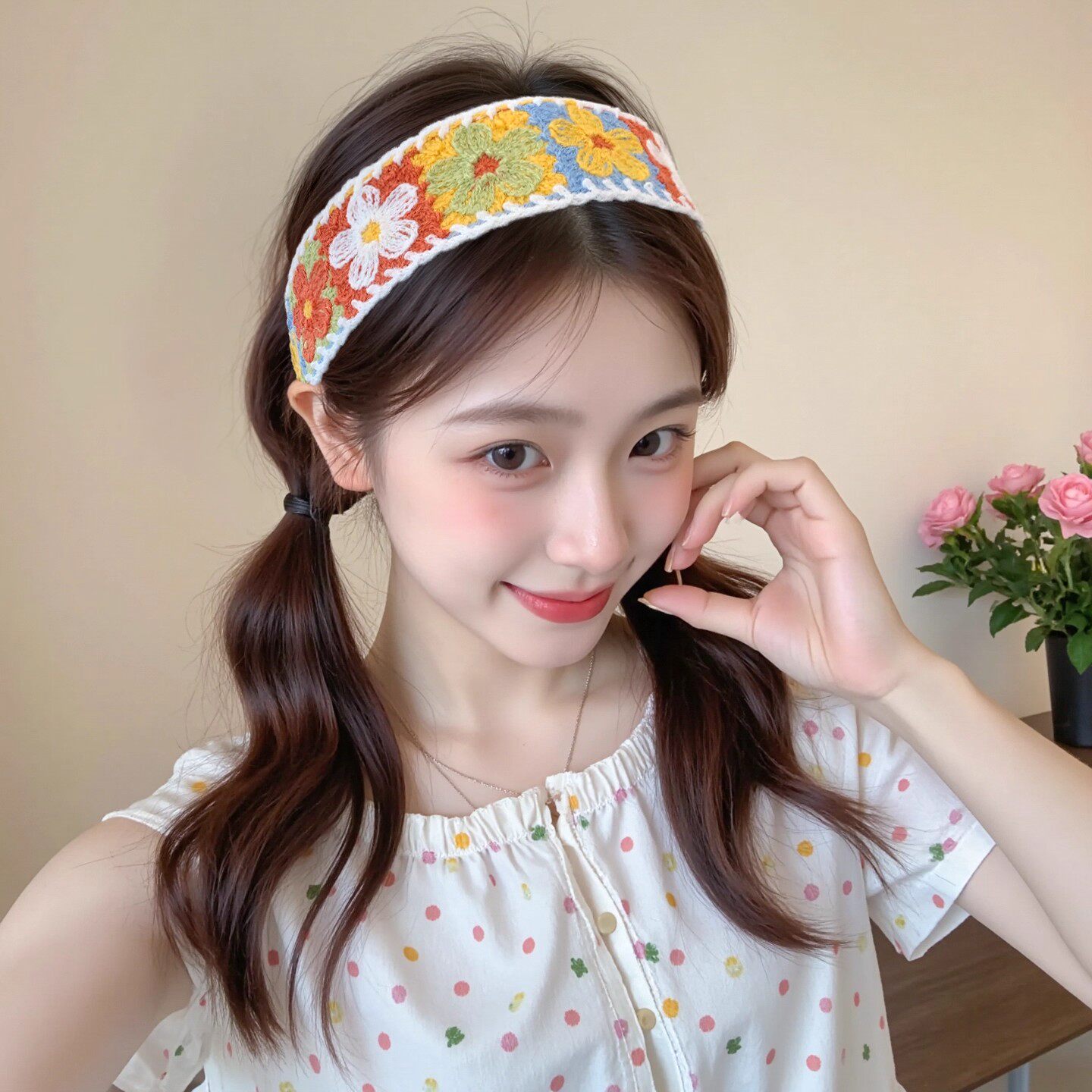 法式碎花针织刘海贴2025新款碎发魔术贴粘贴洗脸发箍女发带发饰