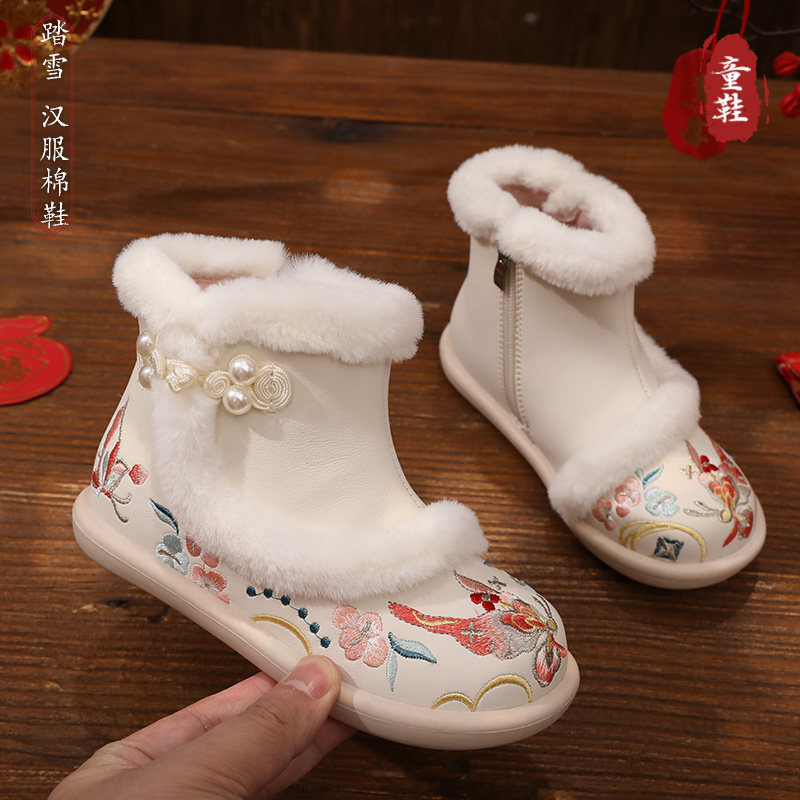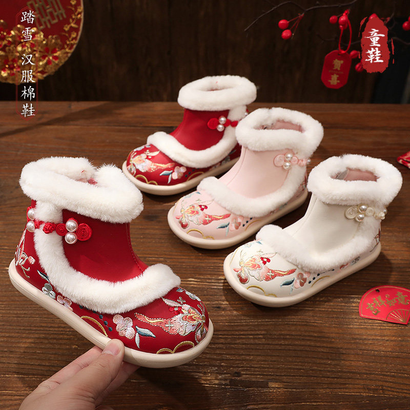 女童汉服鞋配马面裙2025冬季新款加绒儿童雪地靴古风宝宝拜年鞋