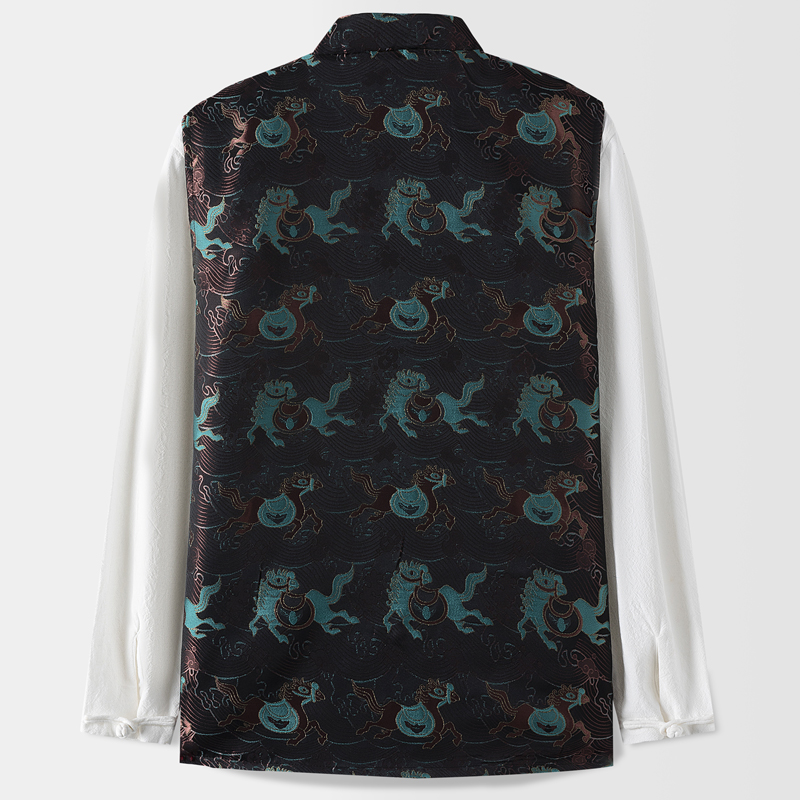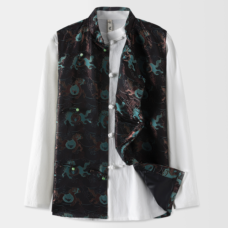 秋季中国风唐装斜门襟小马提花马甲立领男士中式复古改良盘扣坎肩