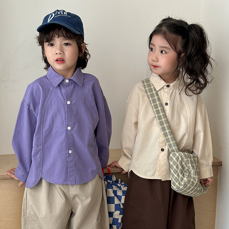 儿童长袖衬衫纯棉男童春装外套2025新款春秋季女童衬衣宝宝上衣服