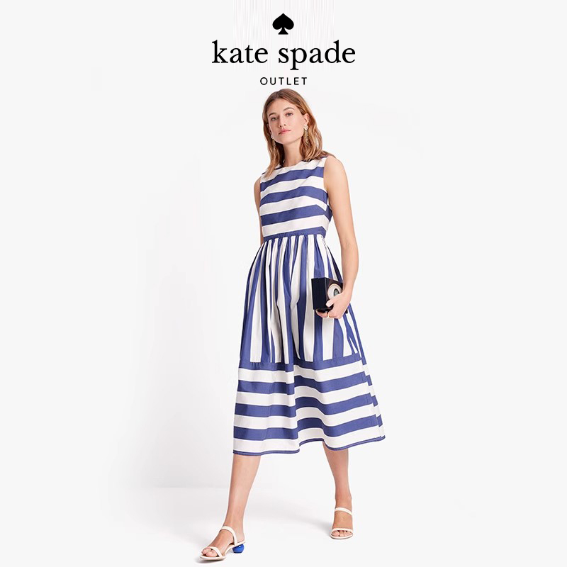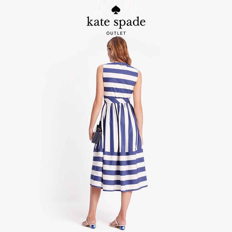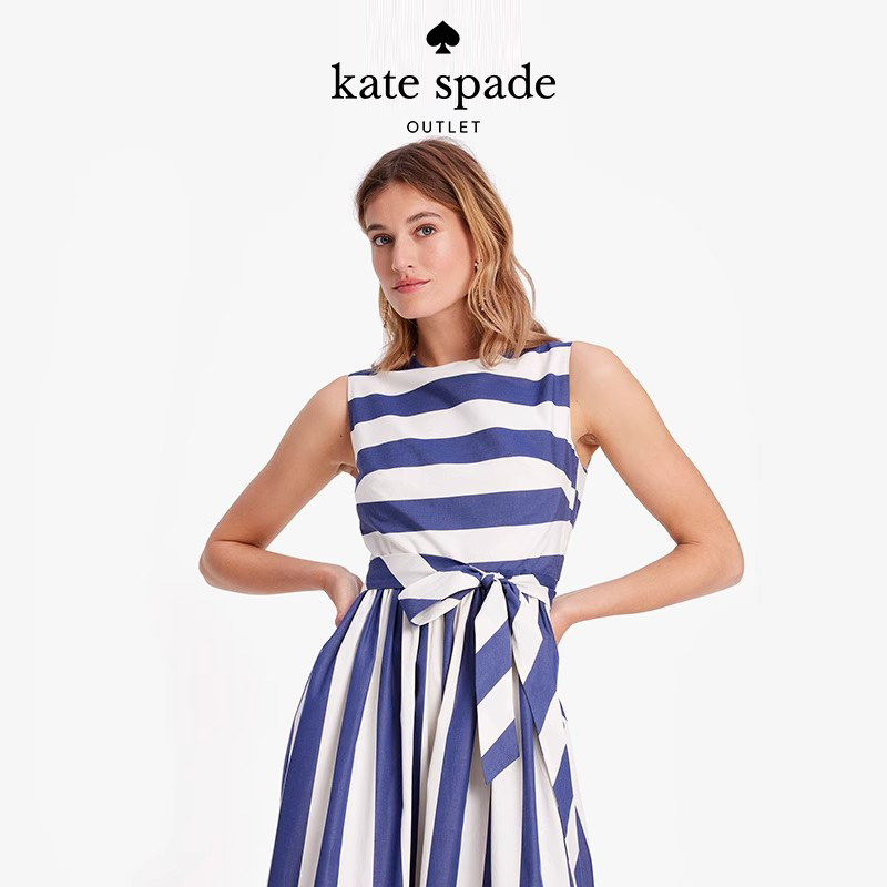 katespade帆布条纹束腰连衣裙
