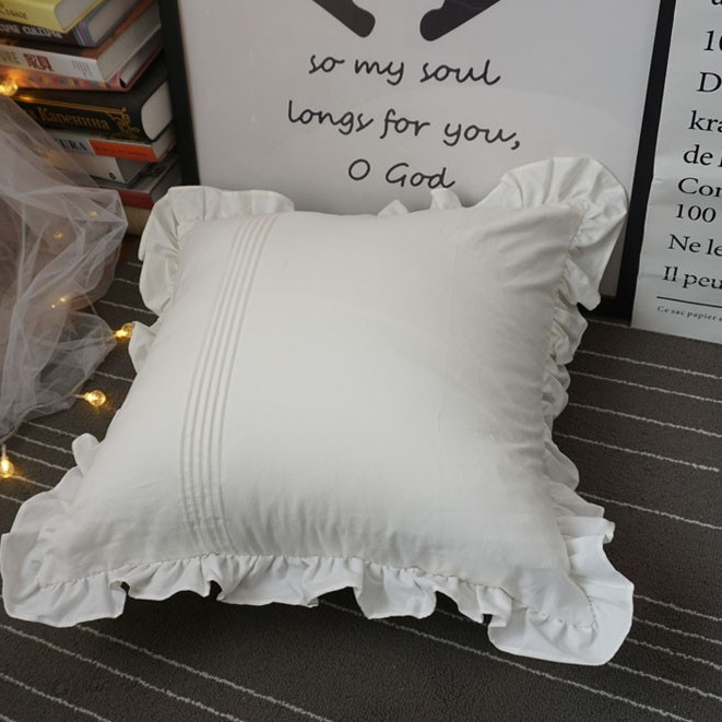 ins简约现代纯棉沙发抱枕靠垫装饰抱枕可爱荷叶边方形靠垫