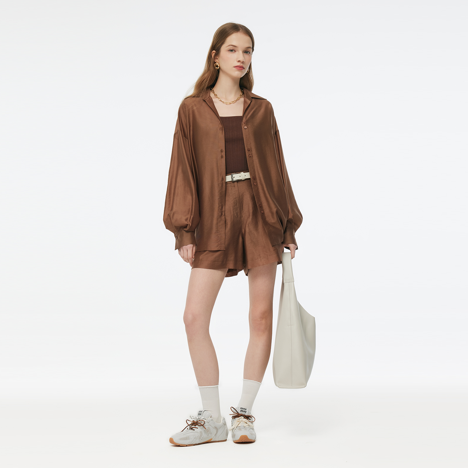 歌莉娅天丝衬衫女上衣夏季流行穿搭2025新款独特超好看女装两件套