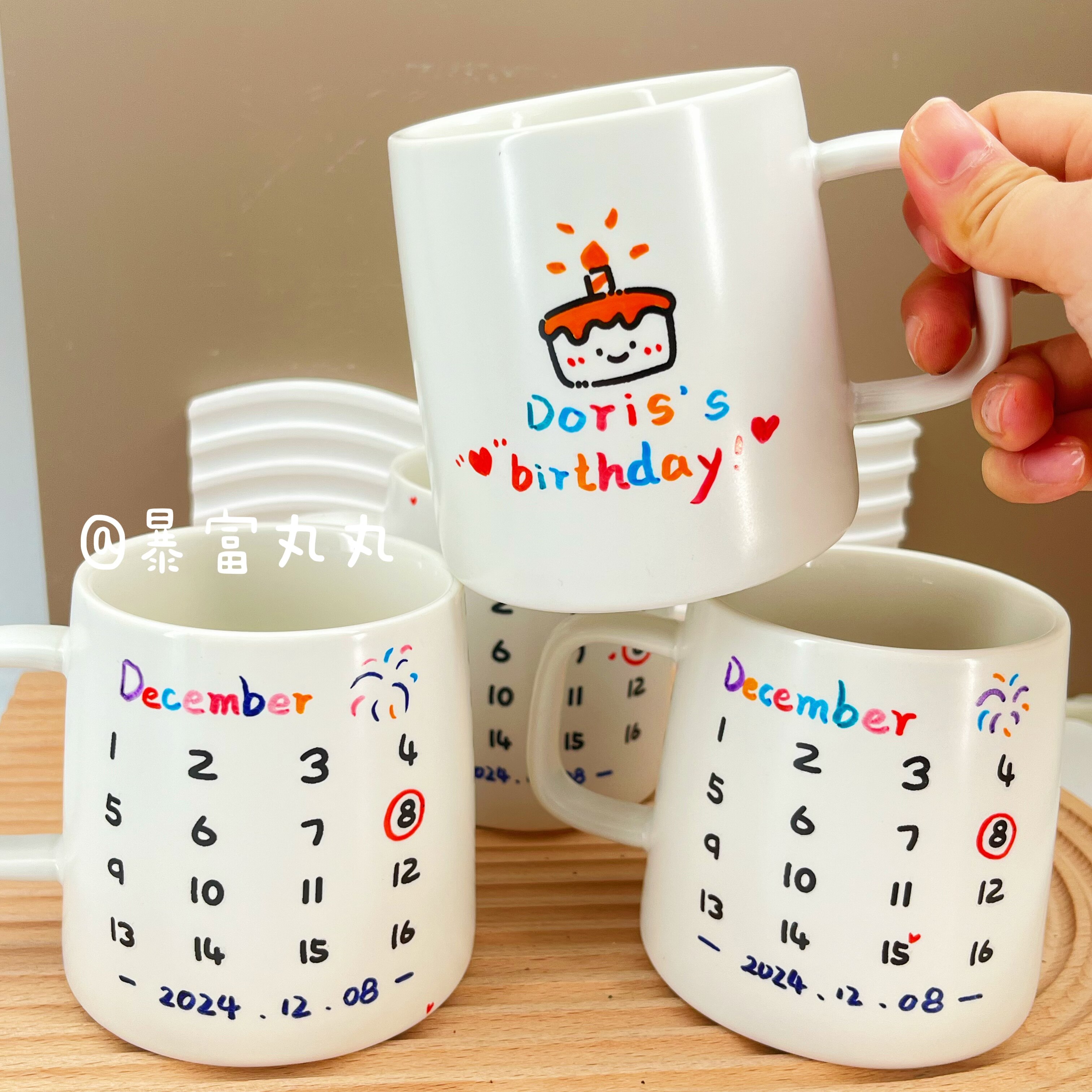 diy日期图手绘定制名字专属杯子!