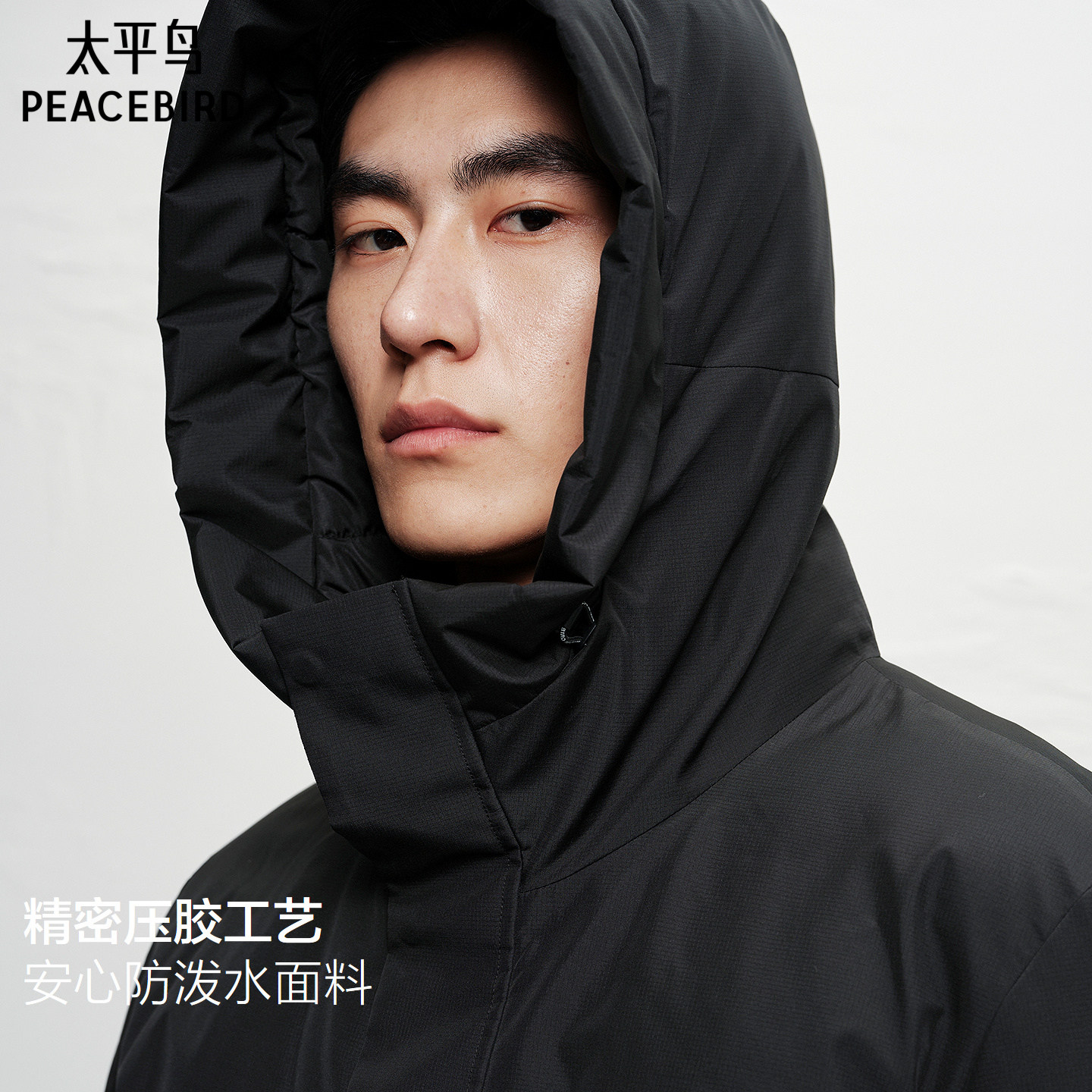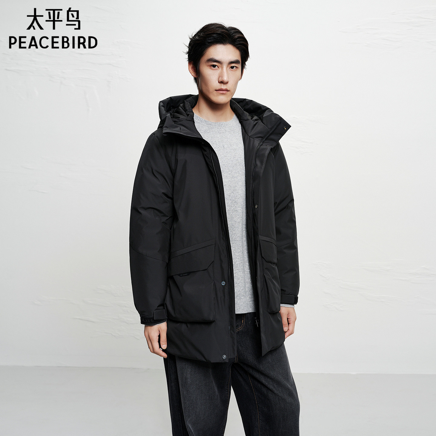 【防泼水】太平鸟男装 防寒派克服25年冬季新款中长款连帽羽绒服