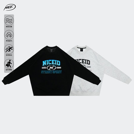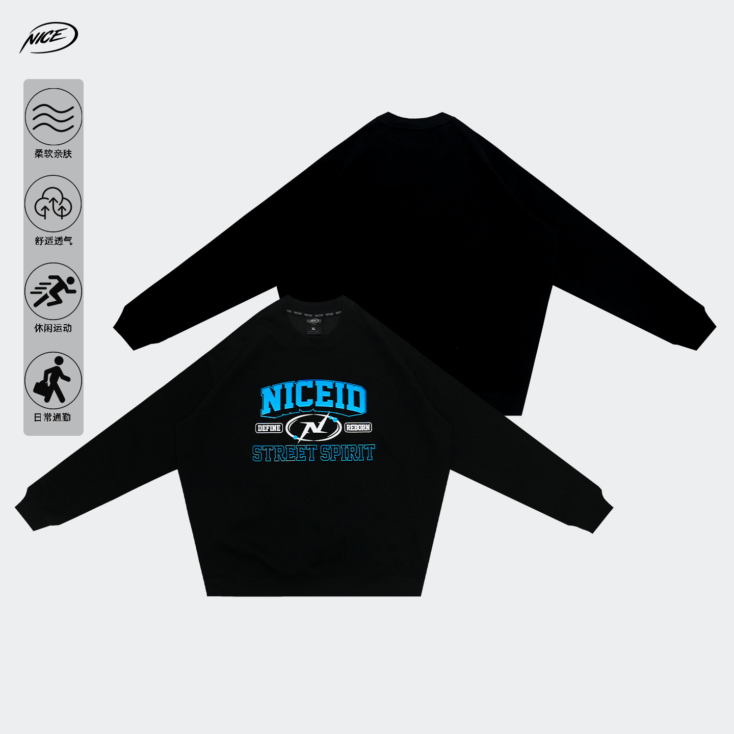 NICEID NICE 字母篮球运动长袖棉打底衫印花男女春秋宽松投篮服