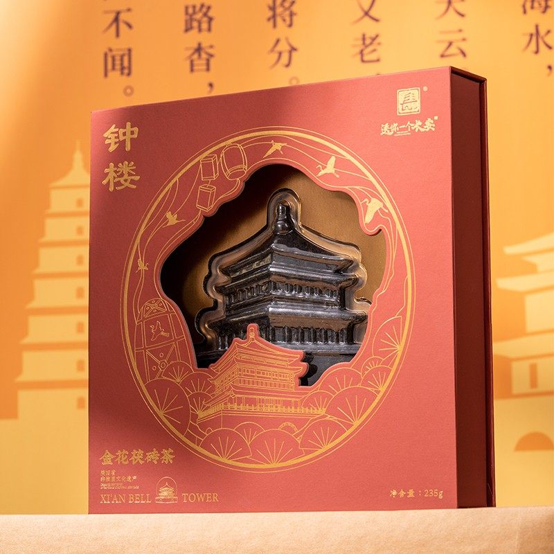 【大雁塔钟楼地标】泾阳茯茶文创礼盒235g 金花茯茶砖茶 西安特产