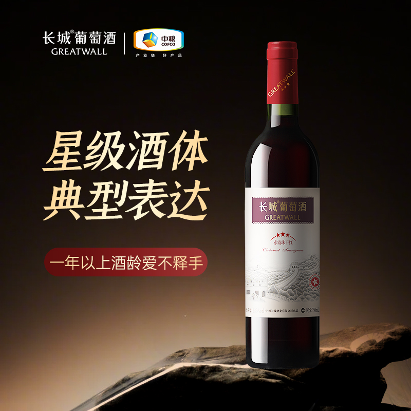经典三星赤霞珠干红葡萄酒红酒6瓶送礼长辈「长城酒官方旗舰店」