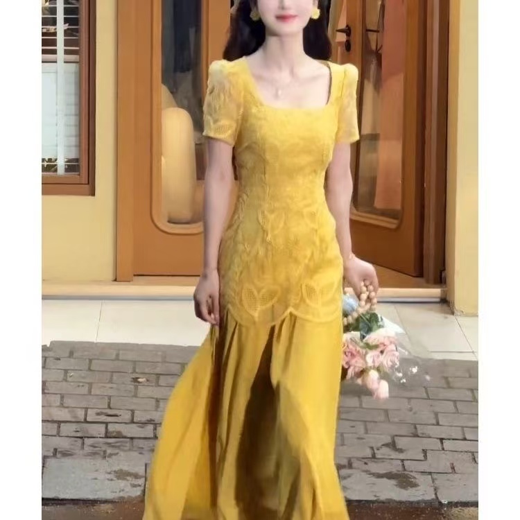 今年流行超好看连衣裙女2025夏季新款高端轻奢收腰独特重工鱼尾裙