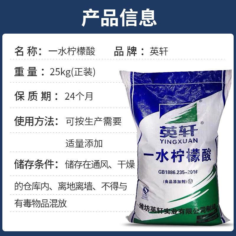 高品质环保英轩一水柠檬酸食品级酸味剂除垢剂清洗剂莲藕龙虾专用