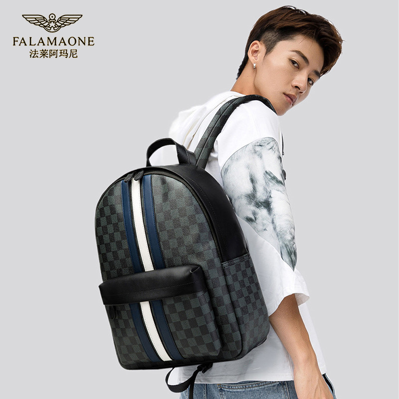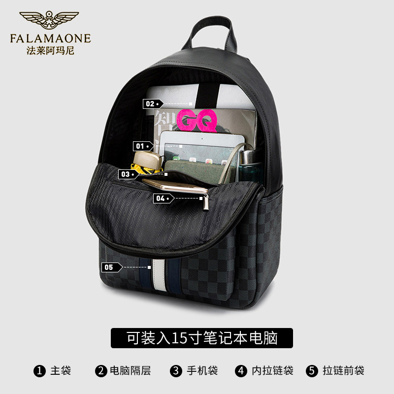 法莱阿玛尼双肩包男新款潮流男士背包商务休闲皮质电脑包学生书包