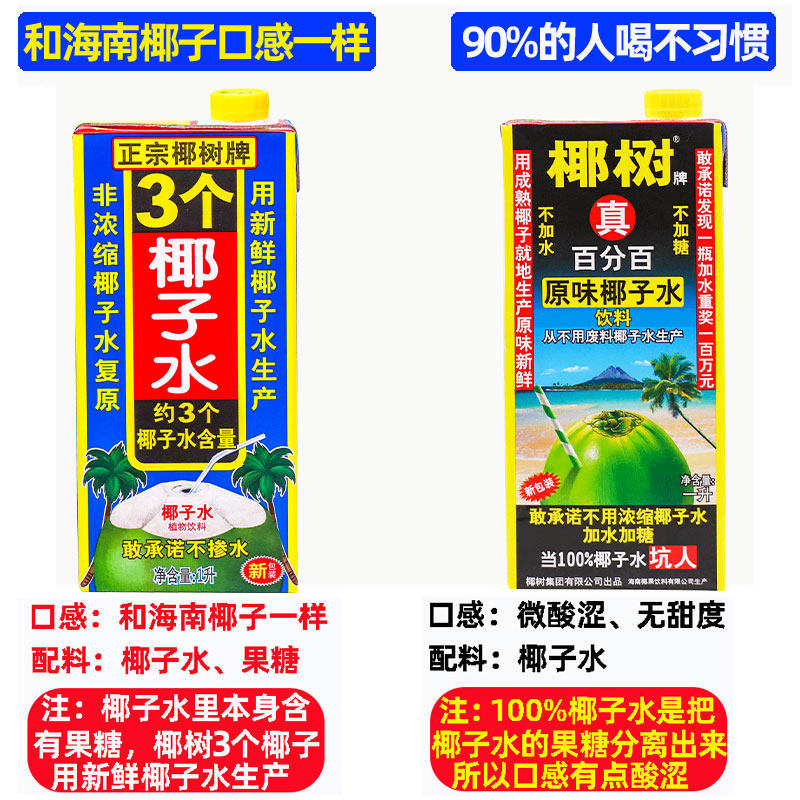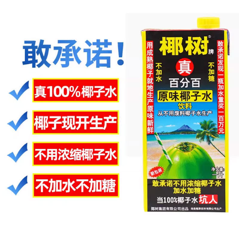 正宗椰树牌真100%椰子水1L*2盒纯海南新鲜椰汁水旗舰椰奶果饮料店