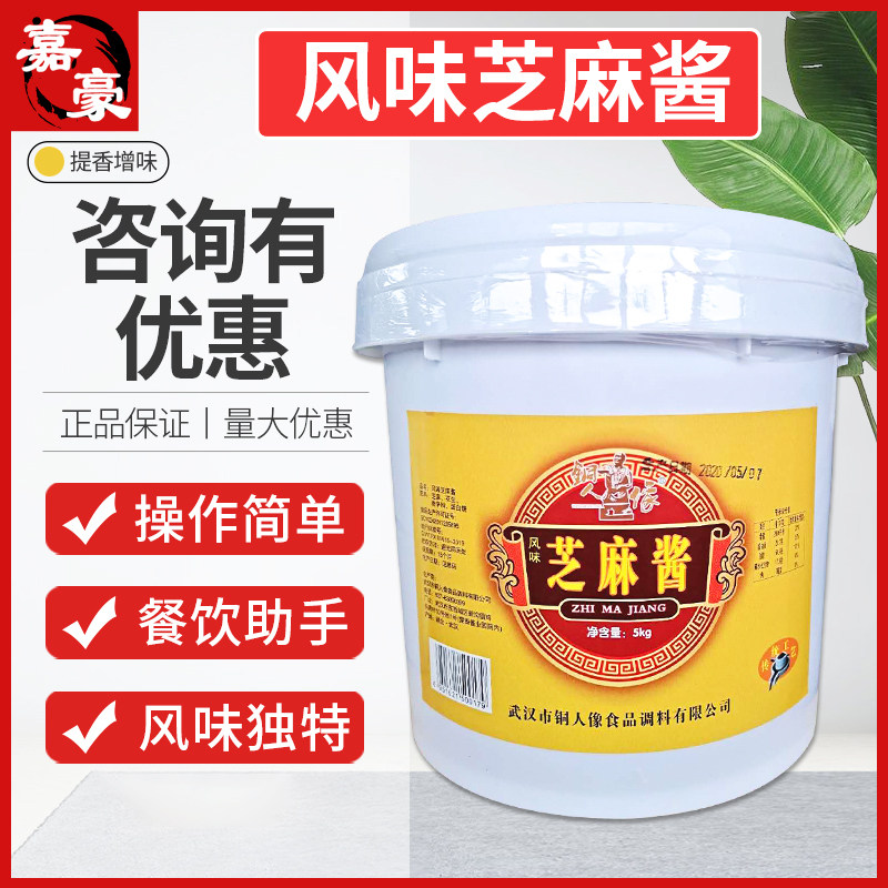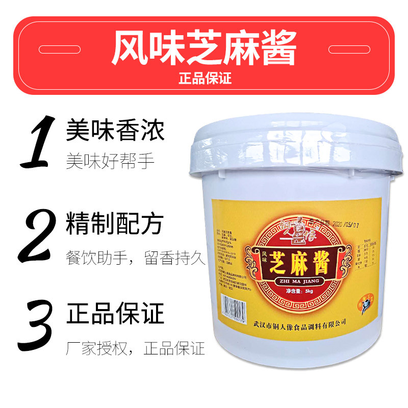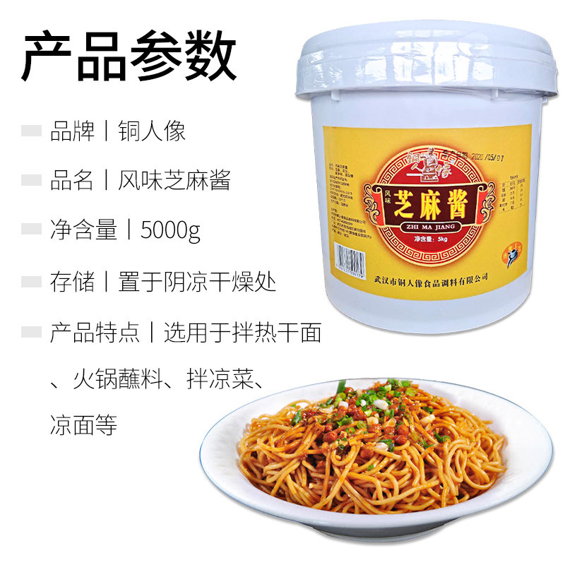 武汉铜人像芝麻酱纯正品5kg桶装 商用热干面芝麻花生酱火锅二八酱