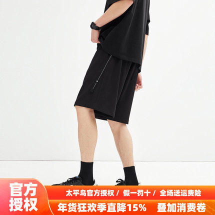 太平鸟男装休闲裤25秋新款半松紧腰中短裤潮牌男士黑色中裤运动裤