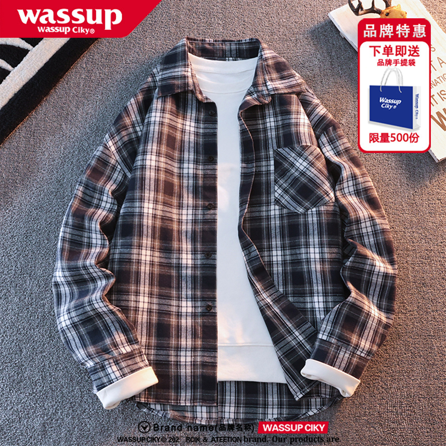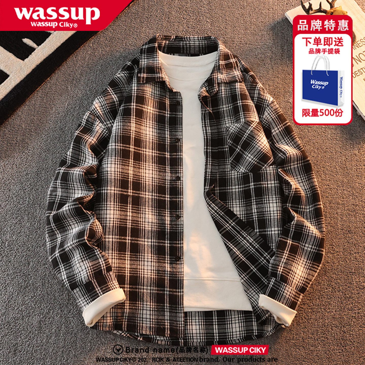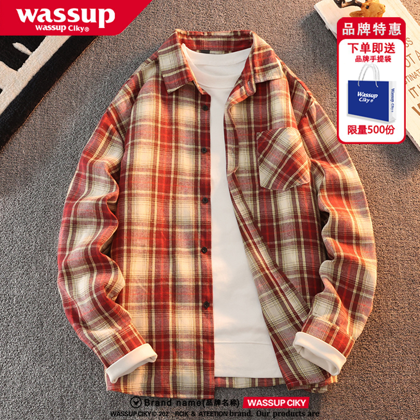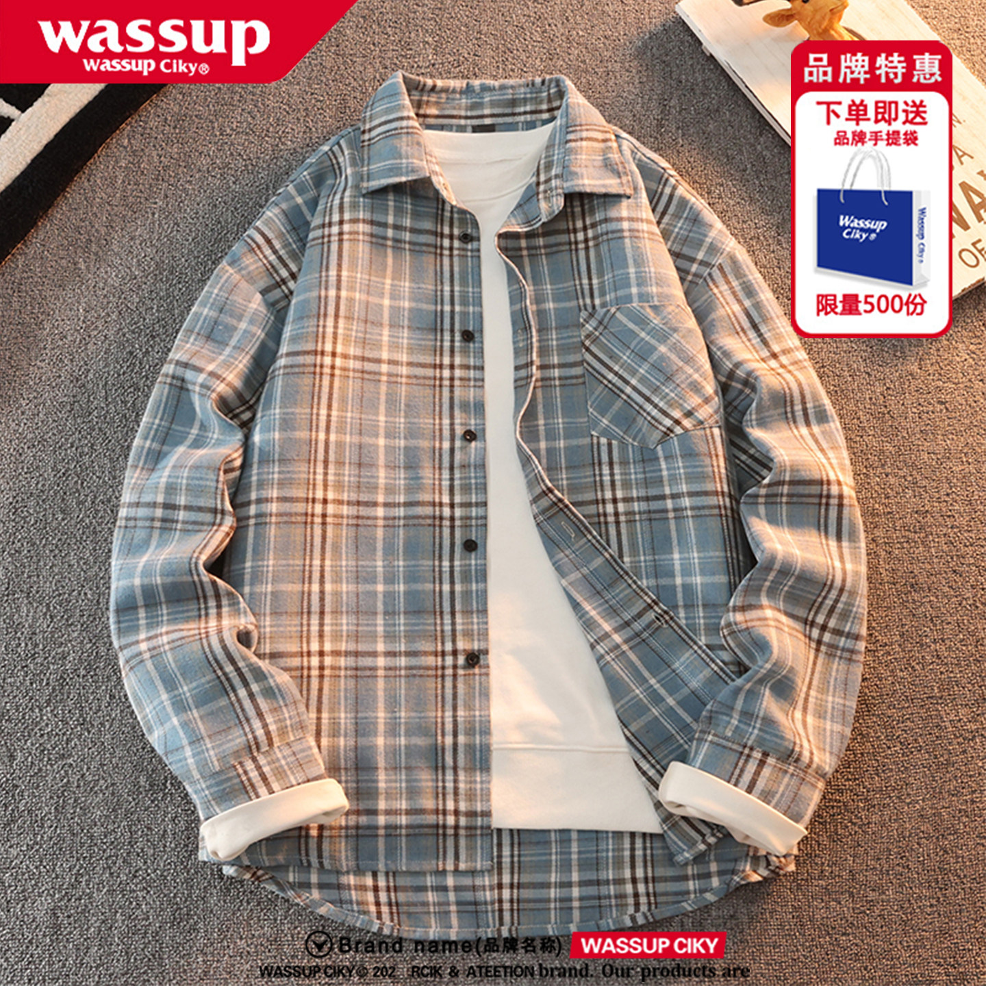 WASSUP美式复古衬衫男女款秋季