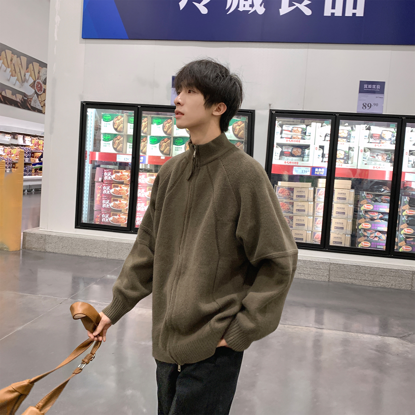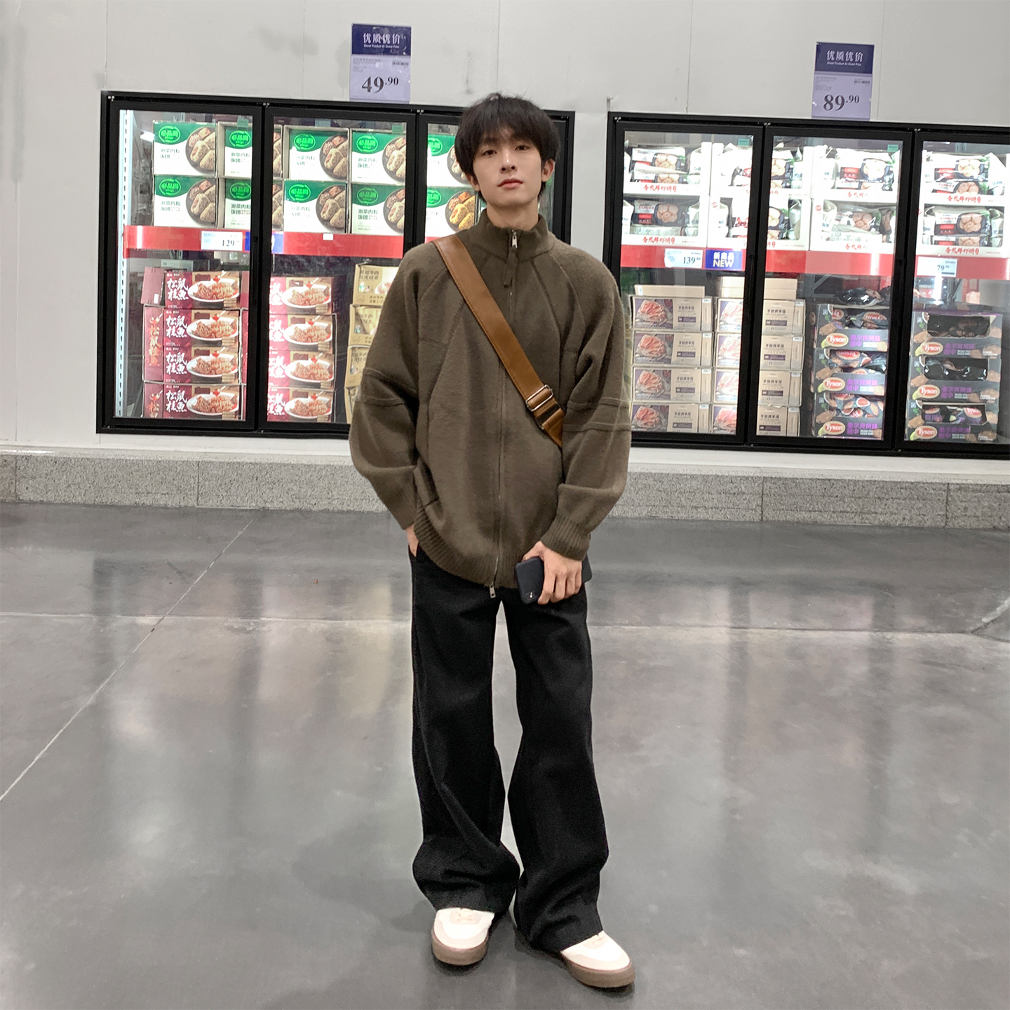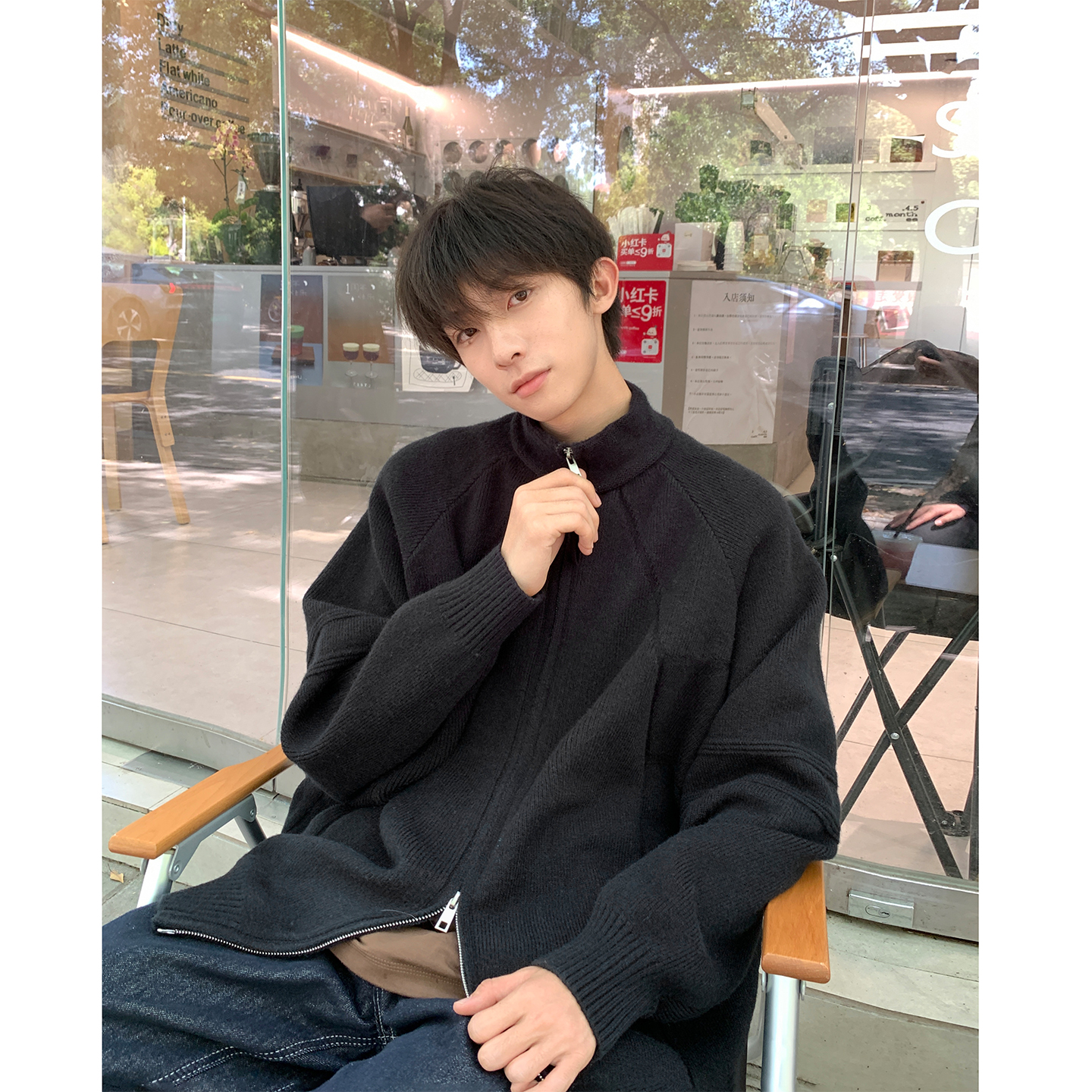 @港仔文艺男 双拉链半高领开衫毛衣男冬季松弛感男生针织衫外套