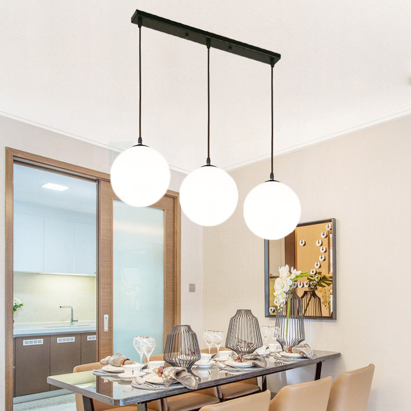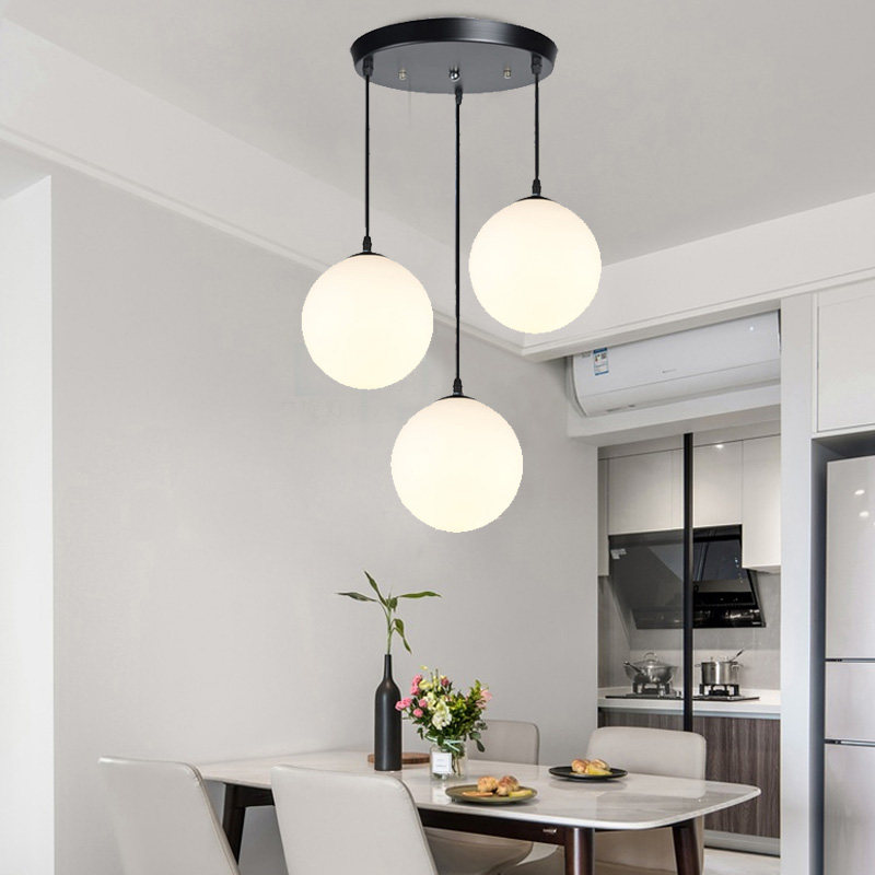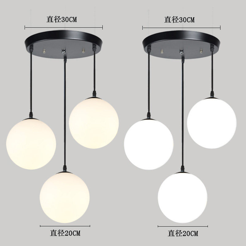 简约餐厅餐桌上方专用三头圆盘橱窗吧台创意复式楼梯球形玻璃吊灯