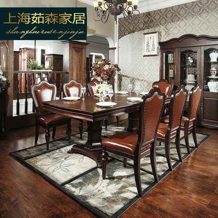 简约美式实木餐桌餐椅组合6/8人餐厅成套家具饭桌1.6米长餐桌家具