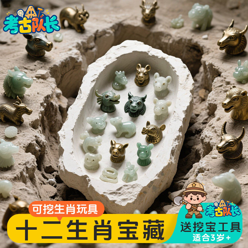 考古挖宝玩具青铜器宝藏古玉益智动手工DIY男女孩挖宝兵马俑玉雕