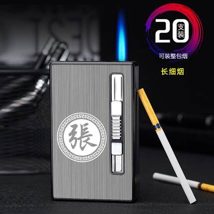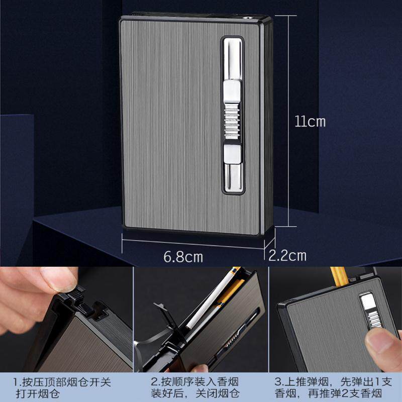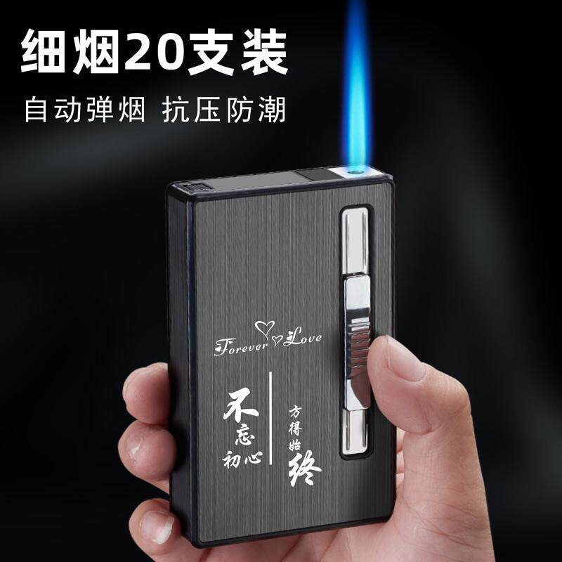 20支装自动弹烟细支烟盒带打火机一体便携式高档香菸盒子男女士潮