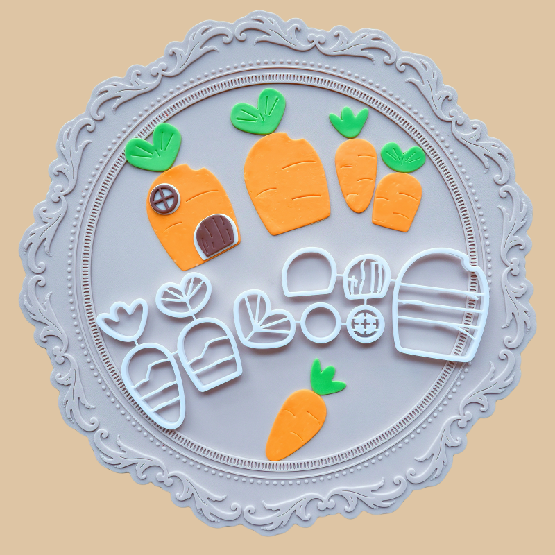 漫步兔森系田园胡萝卜翻糖切模小兔子萝卜屋宝宝周岁蛋糕烘焙模具