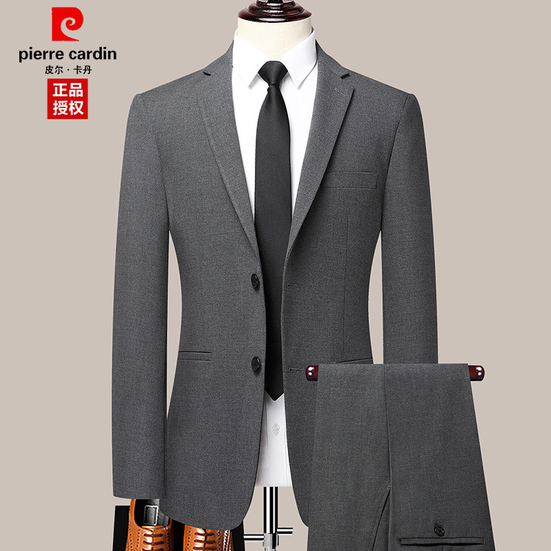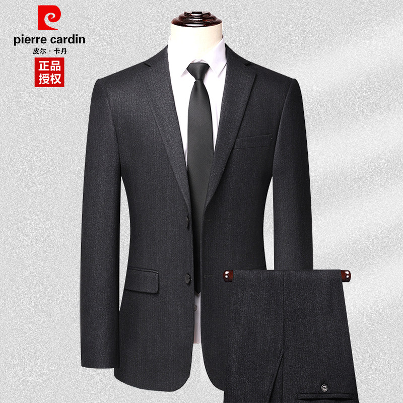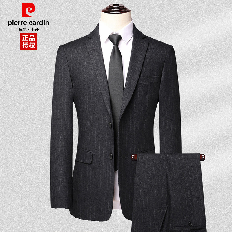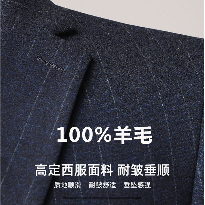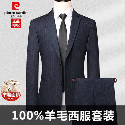 皮尔卡丹100%羊毛西服套装男厚款高级感免烫商务休闲条纹西装外套