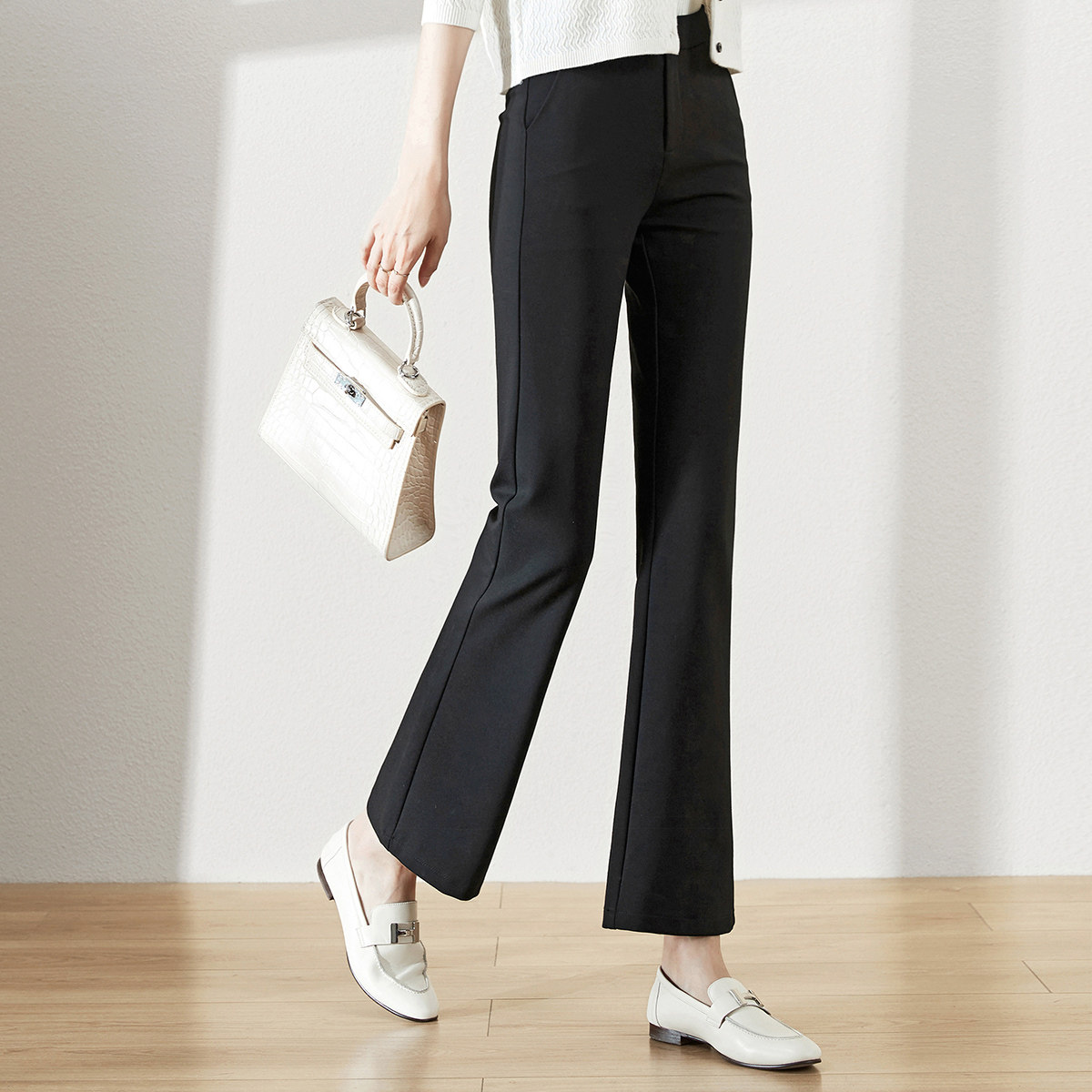 逸阳黑色加厚微喇裤女2025年秋季新款通勤商务休闲大码西装喇叭裤