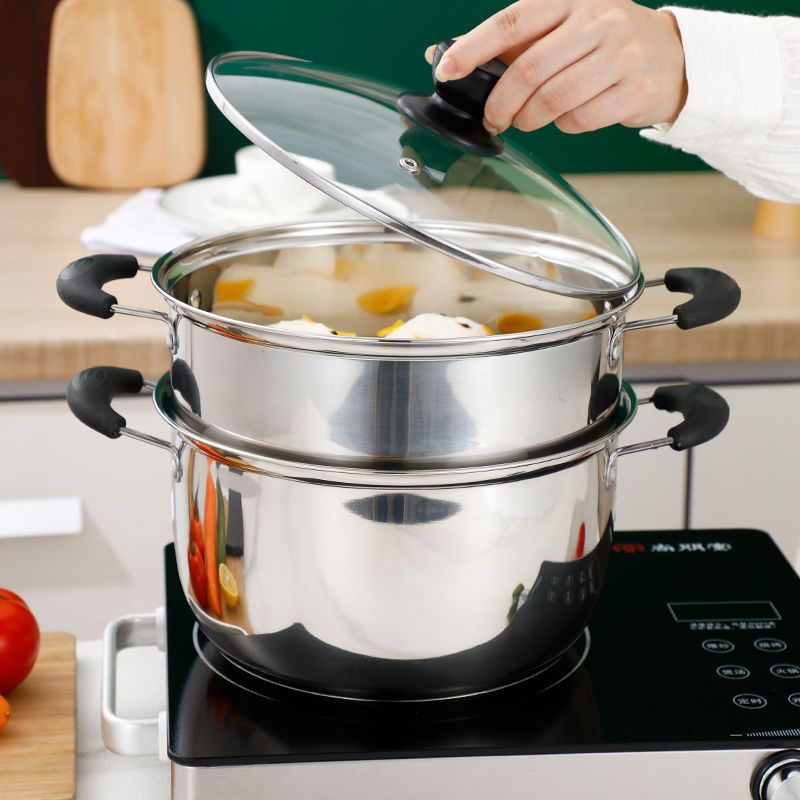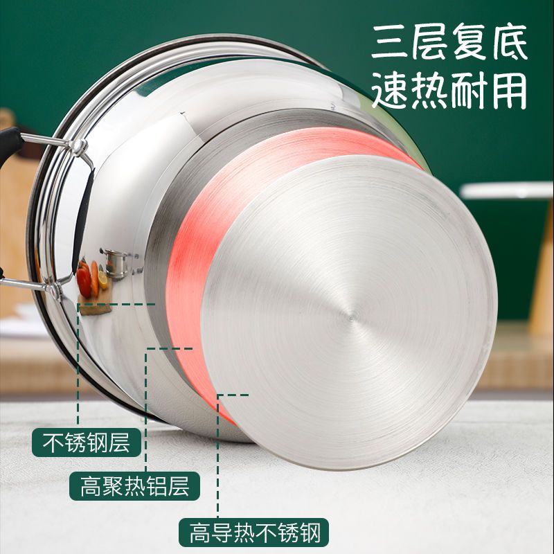 二层小蒸锅加厚不锈钢单层汤锅家用电磁炉明火通用煲煮粥锅