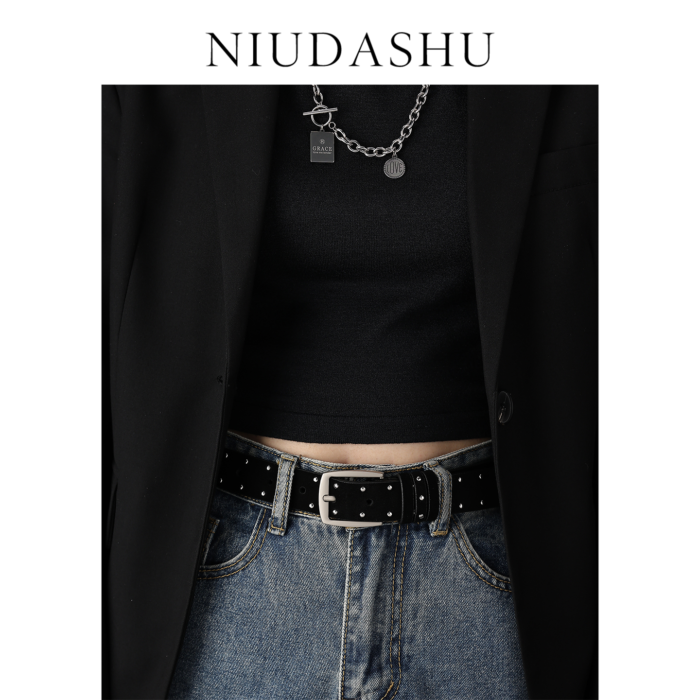 皮带女款2025新款真皮装饰简约百搭绒面设计感牛仔裤腰带女铆钉潮