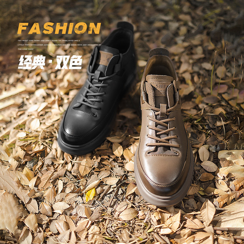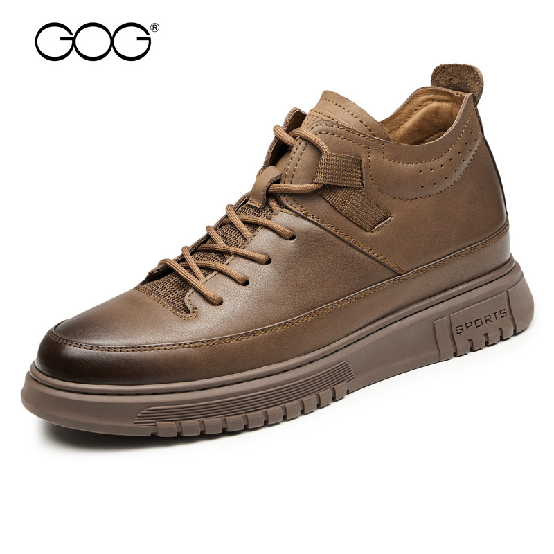 高哥内增高鞋休闲皮鞋男士新款真皮男鞋中帮马丁靴时尚隐形增高鞋