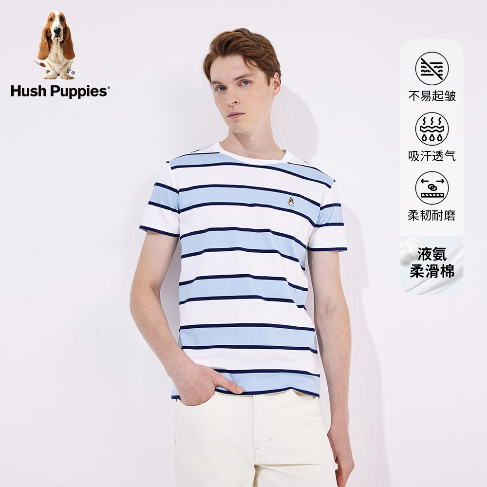 [液氨柔滑棉]暇步士男装横条纹纯棉短袖T恤夏季休闲圆领透气上衣