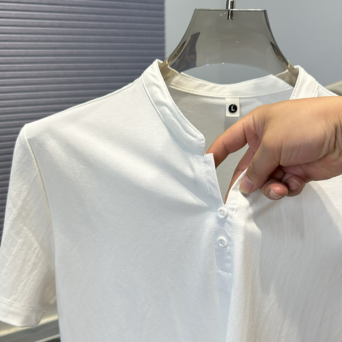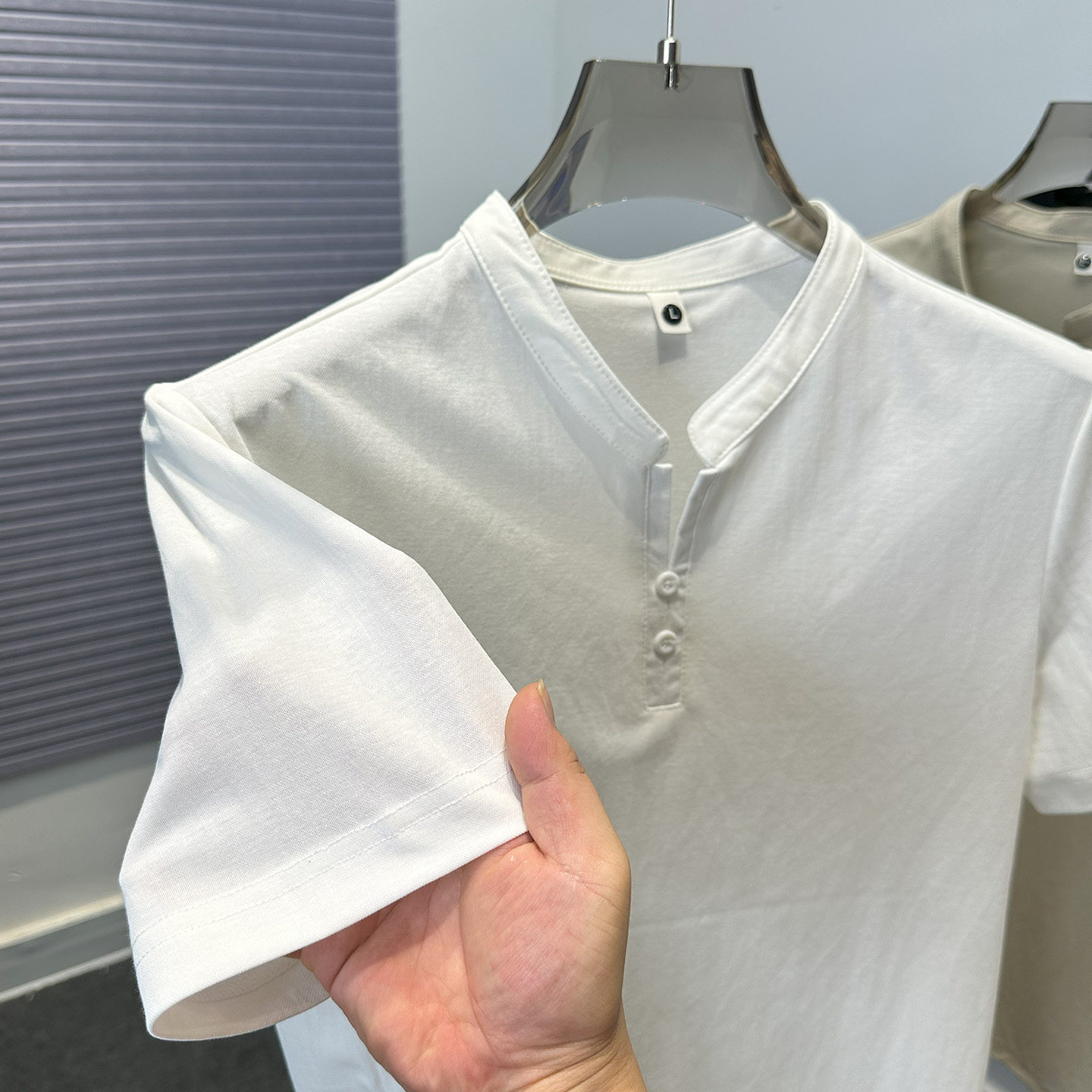 国风亨利领小V亚麻短袖t恤男夏季男装纯色百搭宽松休闲棉麻半袖潮