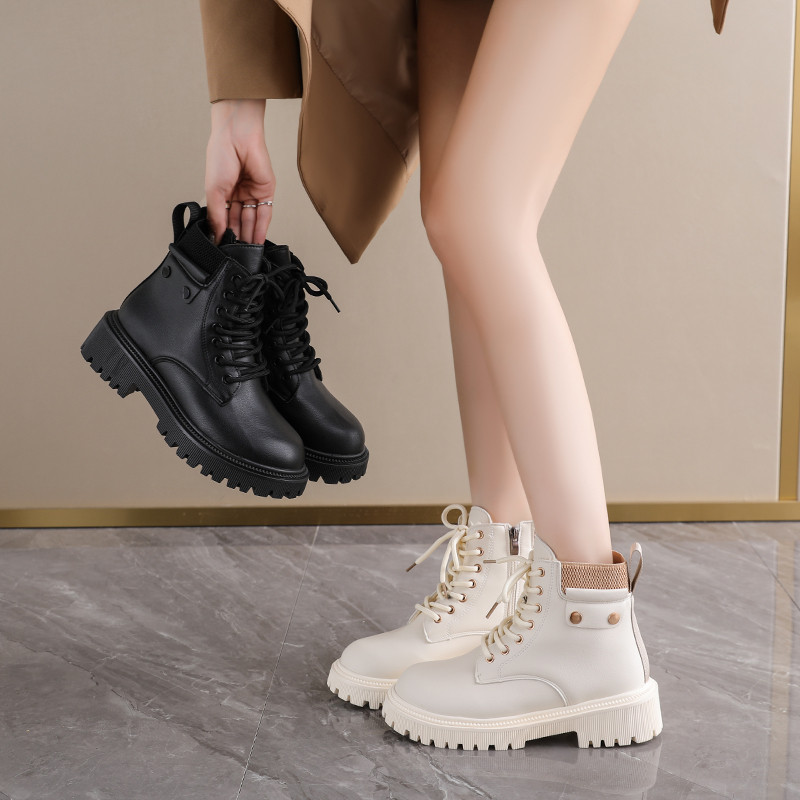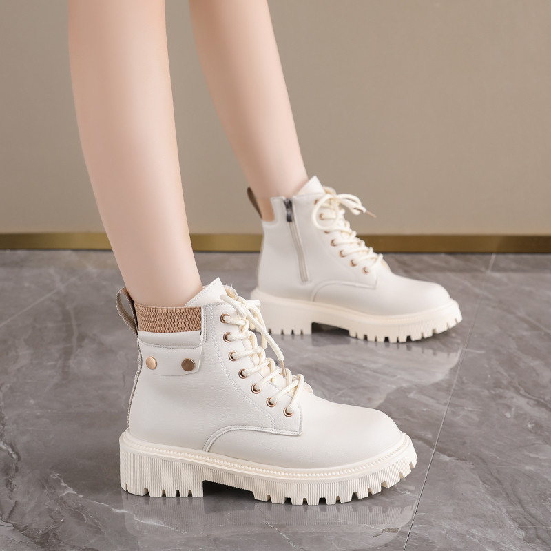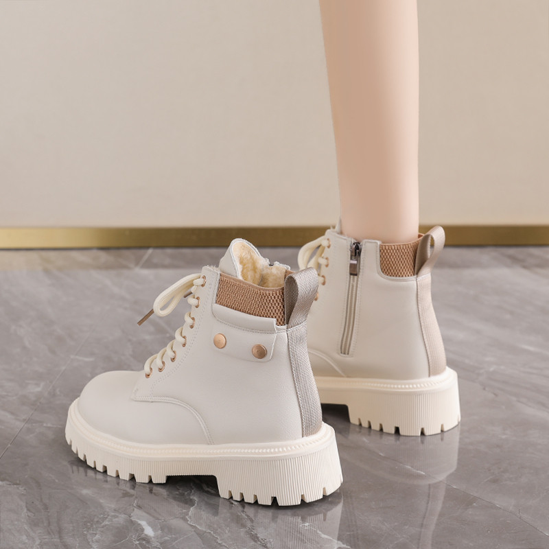 白色小短靴女厚底英伦风马丁靴子2025秋冬新款侧拉链加绒保暖棉鞋