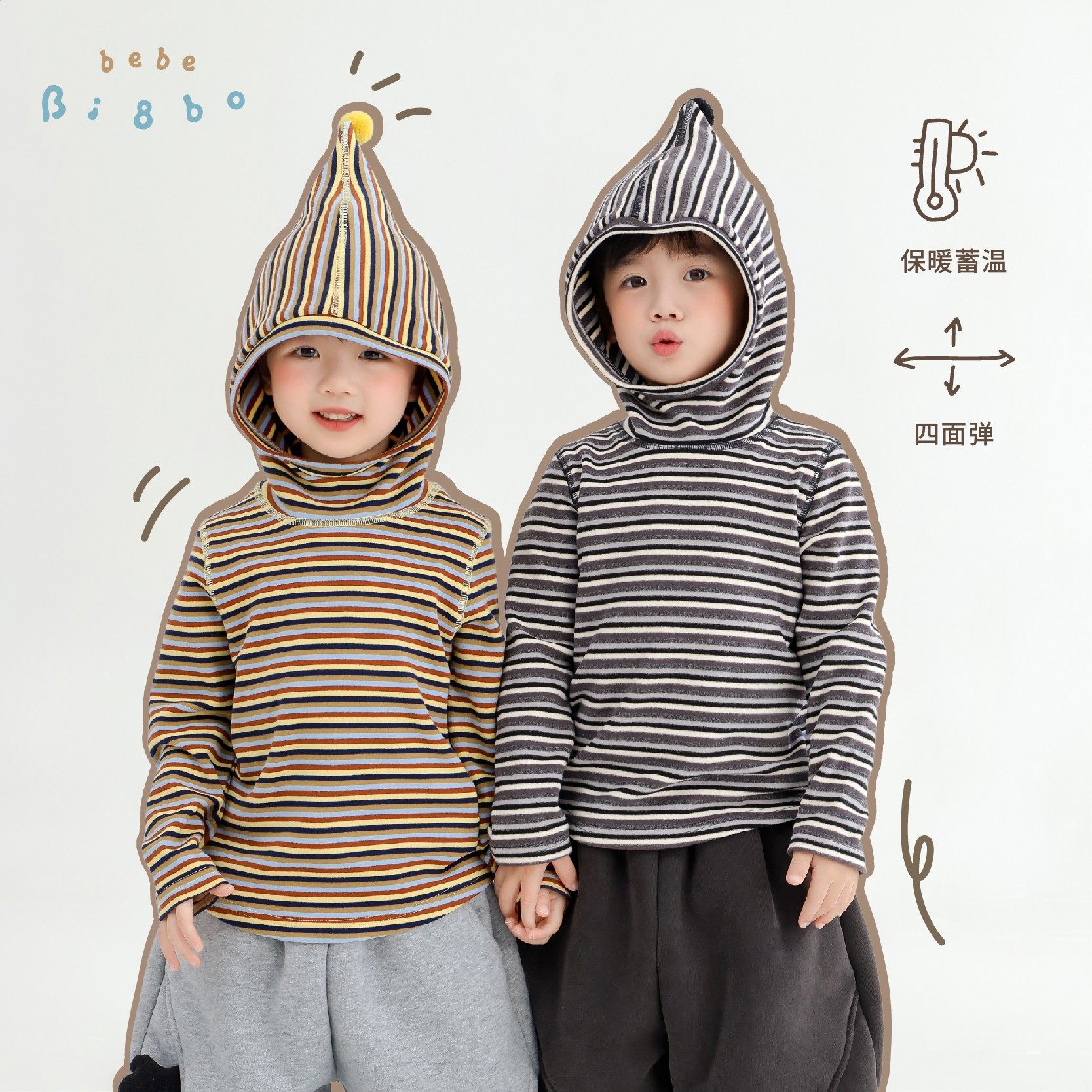 BI8BO儿童打底衫秋冬女孩男童韩版修身条纹连帽秋衣上衣童装31675