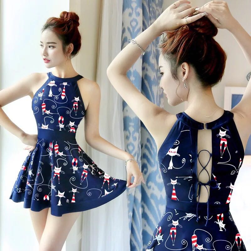 泳衣女2020新款连体裙式遮肚显瘦钢托聚拢大码保守温泉游泳衣