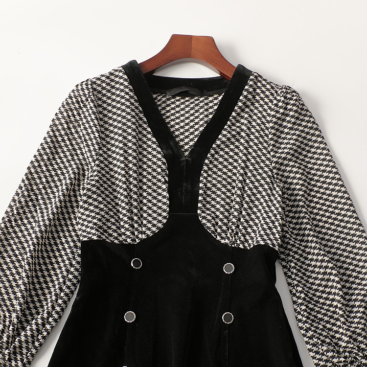 410569批发超值南油高端轻奢原200+高档秋长款V领长袖丝绒连衣裙