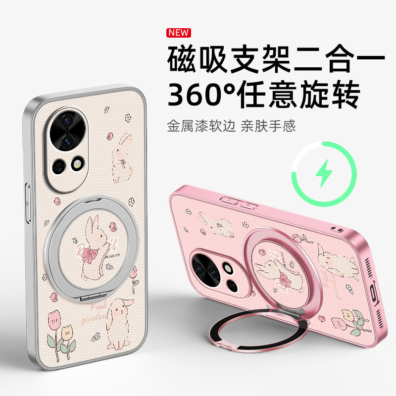 花朵小兔适用华为nova14手机壳带磁吸支架nova13pro新款nova12ultra保护套nove11/10/9/8卡通9se个性创意外壳