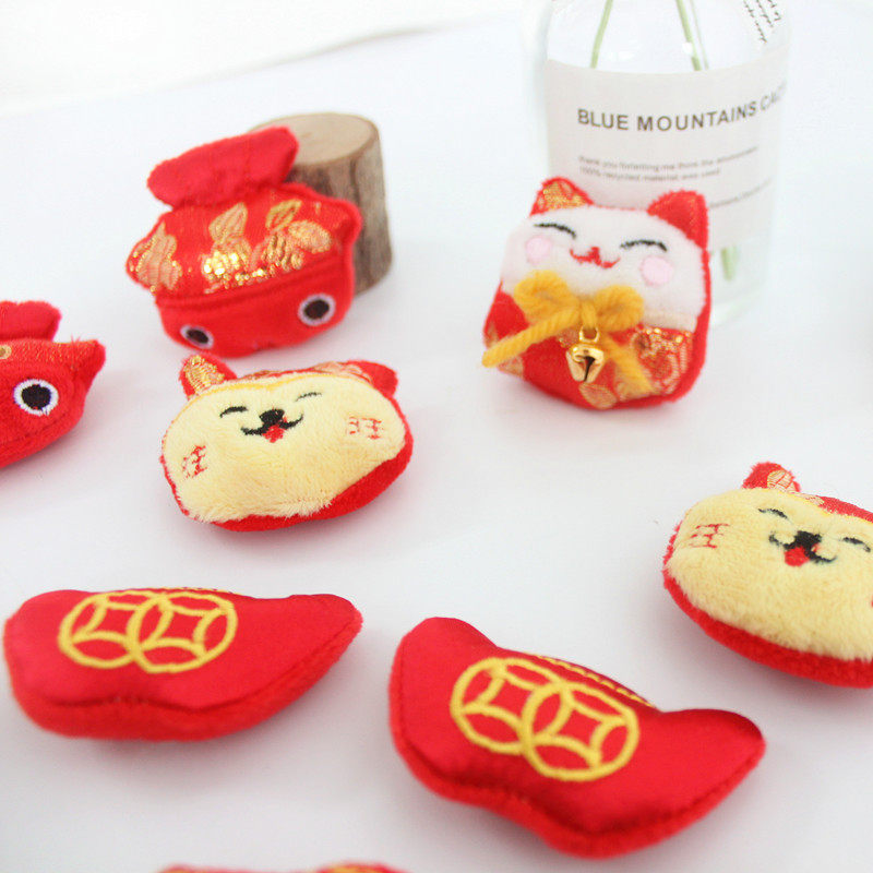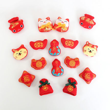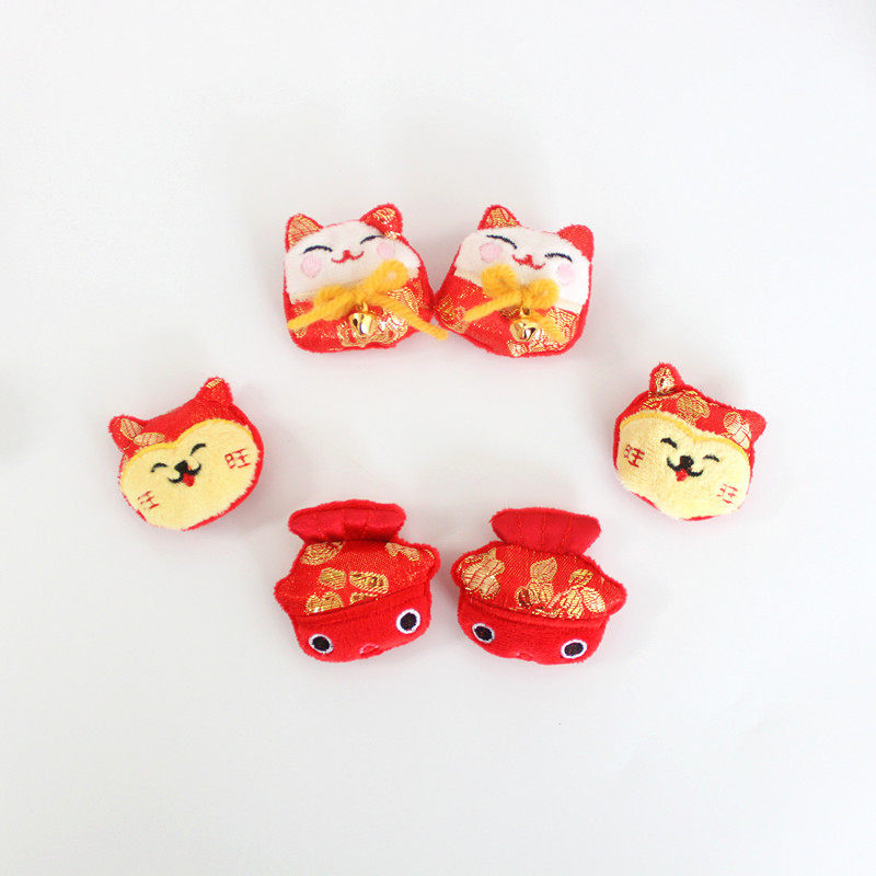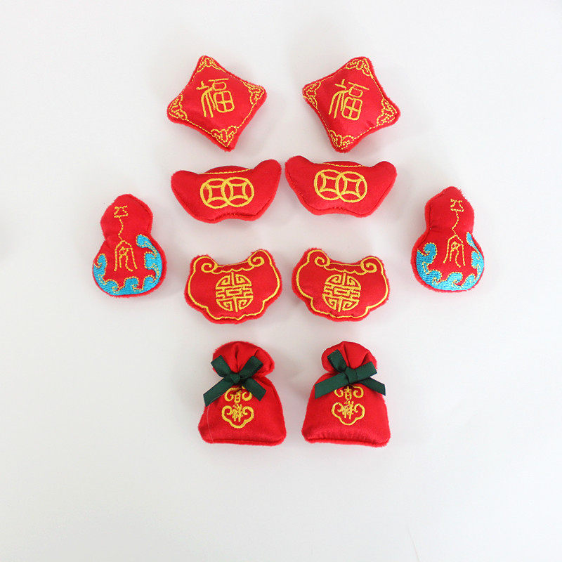 窗帘装饰配件小饰品配饰红色吉祥喜庆点缀别针毛绒元宝福袋胸针