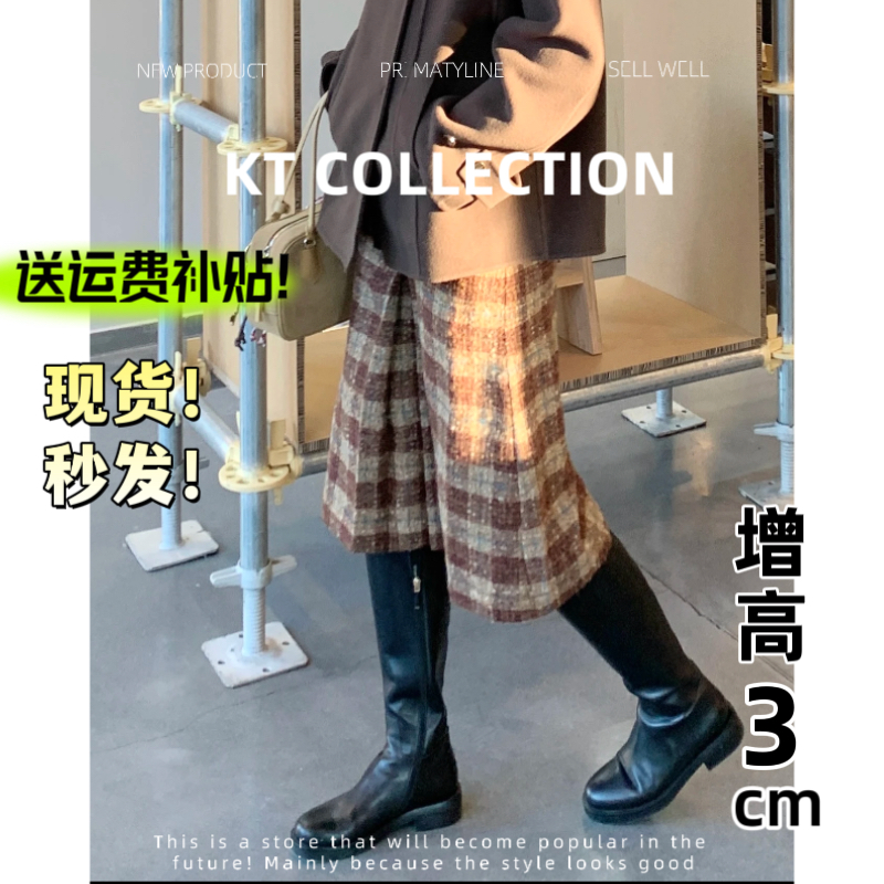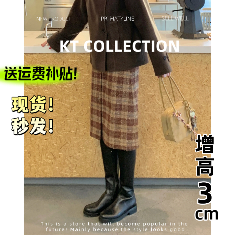 羊皮版!增高3cm~法式复古风靴子圆头设计简约
